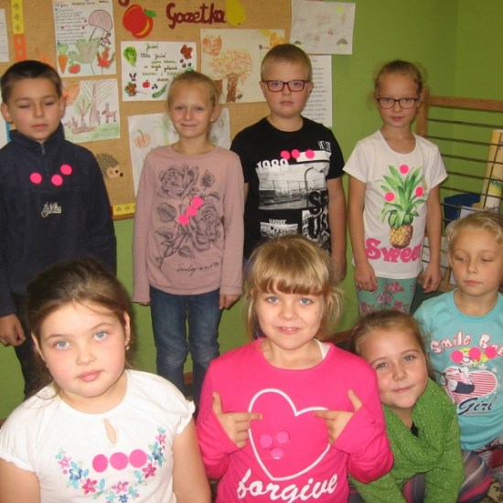 30 października był obchodzony w naszej szkole pod hasłem „Dzień Ciszy”. Na początku zajęć każdy uczeń otrzymał od wychowawcy 3 różowe kółeczka oznaczające liczbę punktów, które trzeba było zachować możliwie jak najdłużej. Jeśli ktoś nie przestrzegał zasady ciszy i spokoju tracił punkt. W każdej klasie realizowano też tematy zajęć związane ze szkodliwością hałasu w naszym otoczeniu. Dzieci formułowały różne hasła popierające spokój i ciszę i przestrzegające przed negatywnymi skutkami hałasu, które wyeksponowano na gazetce szkolnej. Był to też czas, w którym tradycyjnie zachowujemy powagę przygotowując się do uroczystości Wszystkich Świętych i Zaduszek.
