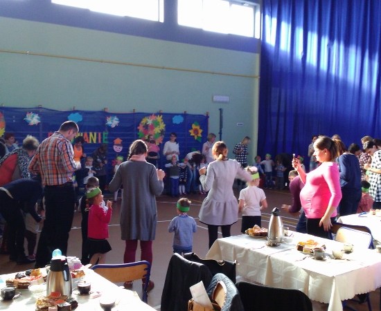 Przedszkolaki zdały egzamin śpiewająco, a rodzice złożyli ślubowanie, że będą swoje dzieci bardzo kochać i wspierać je w ich prawidłowym rozwoju. Uroczystość uświetnił p. Krzysiu, który prowadzi w naszym przedszkolu zajęcia rytmiki.
