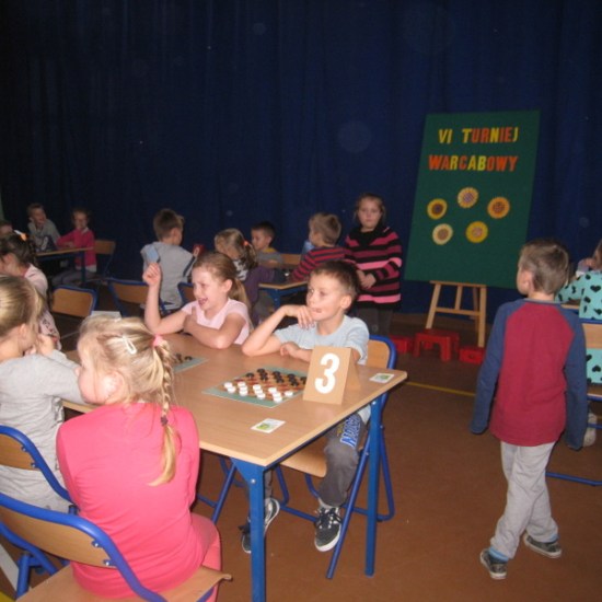 10 listopada w naszej szkole odbył się VI Turniej Warcabowy. Udział wzięło 24 zawodników w wieku 6-9 lat. Po 4 rundach do finału doszło czterech uczniów: Adam, Rafał, Artur i Jasiu.