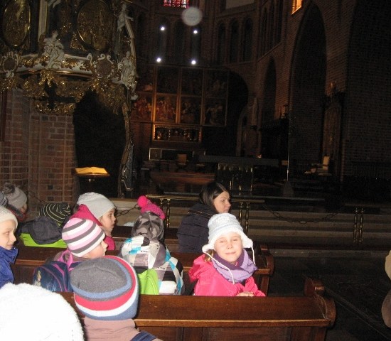 Po zajęciach w muzeum poszliśmy zwiedzać katedrę w Poznaniu. W jej podziemiach mieliśmy okazję zobaczyć fragmenty katedry preromańskiej i romańskiej, a także relikty grobowców – najprawdopodobniej pierwszych władców Polski Mieszka I i króla Bolesława Chrobrego, jak również relikty misy chrzcielnej pochodzącej z X wieku, w której mógł przyjąć chrzest pierwszy Władca Polski wraz z poddanymi.
