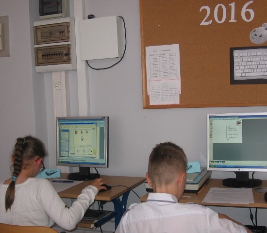 W poniedziałek, 23 maja 2016 r. odbył się w naszej szkole już po raz VIII Gminny Konkurs Informatyczny. W tym roku do udziału w konkursie zgłosiło się 8 uczestników ze szkół w Bonikowie, Racocie, Starego Lubosza i Turwi Nad prawidłowym przebiegiem konkursu czuwała komisja w składzie: Olena Kalemba, Dorota Gronczewska i Maria Jakubowska. Konkurs składał się z 2 części. Na początku wszyscy uczestnicy w ciągu 30 minut rozwiązywali test z zakresu wiedzy informatycznej przewidzianej podstawą programową dla klas I- III, a następnie przystąpili do rozwiązywania zadań praktycznych. Nasi mali informatycy musieli wykazać się między innymi takimi umiejętnościami jak: obsługa sprzętu komputerowego, programów użytkowych Microsoft Word, Paint, oraz wyszukiwaniem informacji na zadany temat we wskazanej witrynie internetowej. Jedną z ważniejszych umiejętności, którą sprawdzano przy wykonywaniu każdego z zadań było poprawne zapisywanie prac na dysku. Ostateczna klasyfikacja uczestników po wykonaniu wszystkich zadań przedstawia się następująco: