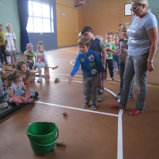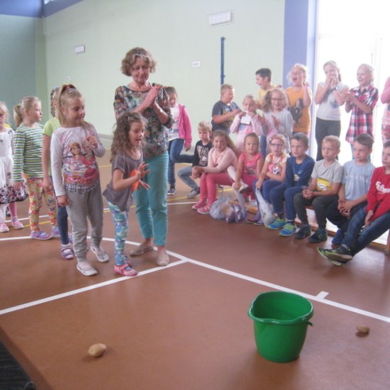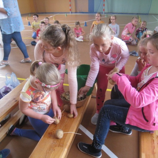 Spotkanie poprowadziła pani Beata Matyjaszczyk. Poznaliśmy historię ziemniaka, po czym przedszkolacy przystąpili do swoich pierwszych konkurencji. Rzucali ziemniakami do kosza, a starsze dzieci ścigali się w sadzeniu ziemniaków. Młodsze dzieci wraz ze swoimi wychowawczyniami stroiły Panią Jesień materiałami przyrodniczymi, starsi uczniowie ubierali Panią Jesień w przygotowane stroje. Po miłej zabawie i ciekawych konkursach przyszedł czas na poczęstunek. Dzieci smakowały placek ze śliwkami oraz ziemniaki pieczone w ognisku z dodatkiem białego twarożku, czyli wielkopolskie pyry z gzikiem. (kn)