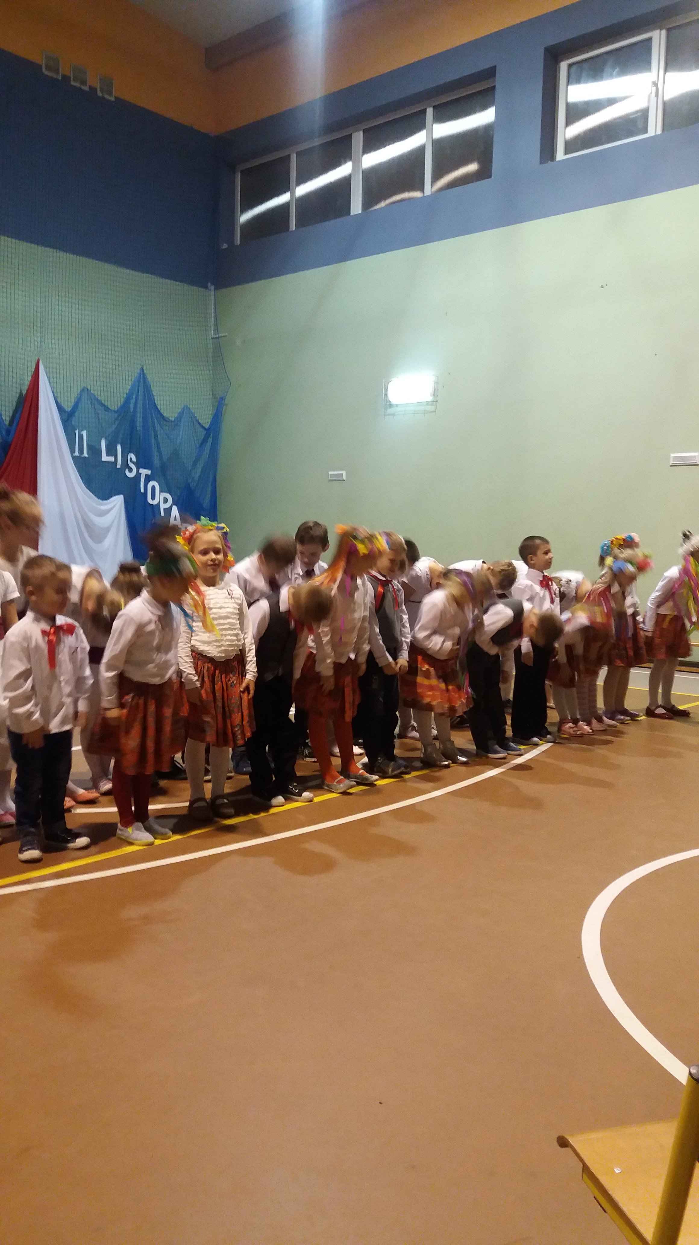 W czwartek z okazji zbliżającego się Święta Niepodległości odbyła się w naszej szkole wieczornica. Nasza szkoła z Klubem Seniora przygotowała piękne występy. Nasze panie pomagały nam się przygotować do tego święta. Uczniowie pokazali taniec z szarfami, odtańczyli poloneza i krakowiaczka. Były też wiersze i piosenki. Wszyscy mieli na sobie piękne stroje. Obecni goście zgromadzeni byli wokół ogniska. Na koniec wszyscy z paniami z Klubu Seniora śpiewali pieśni patriotyczne. Wszyscy miło spędzili czas, otrzymaliśmy wiele oklasków od publiczności. Po występie w nagrodę zostaliśmy poczęstowani ciasteczkami.