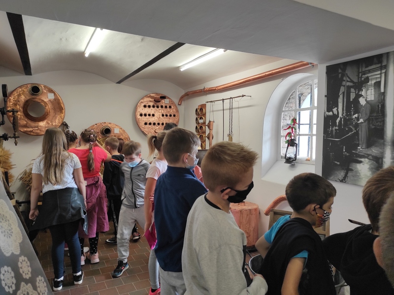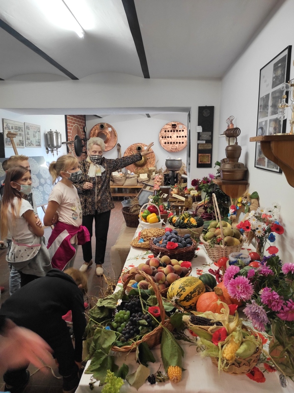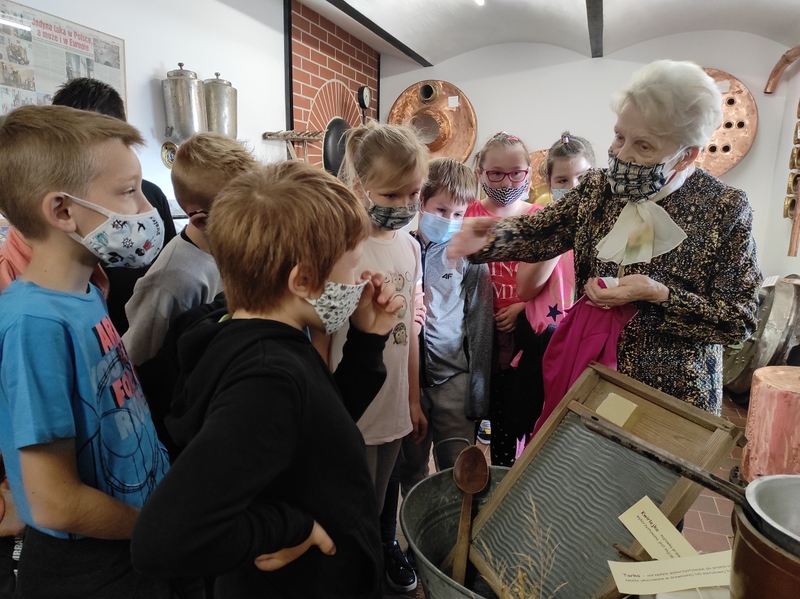 To temat wycieczki, którą odbyliśmy 8 września. Wystawa zorganizowana była w Muzeum Gorzelnictwa w Turwi, a przygotowały ją panie z miejscowego Klubu Seniora w ramach realizowanego projektu. Wystawa miała na celu przybliżenie narzędzi, sposobów produkowania i przetwarzania produktów mlecznych i zbożowych, zajęć mieszkańców wsi, wyglądu chat i zagród. Ekspozycja była ogólnodostępna, a dla uczniów naszej szkoły zadysponowano specjalny czas, by spełnić wszelkie obostrzenia związane z korona wirusem. Po wystawie oprowadziła nas pani Janina Wesołek, która w bardzo przystępny i umiejętny sposób pobudziła ciekawość dzieci. Była to dla nich interesująca lekcja, pokazująca trud życia, ale i pomysłowość ich babć i dziadków oraz poprzednich pokoleń.