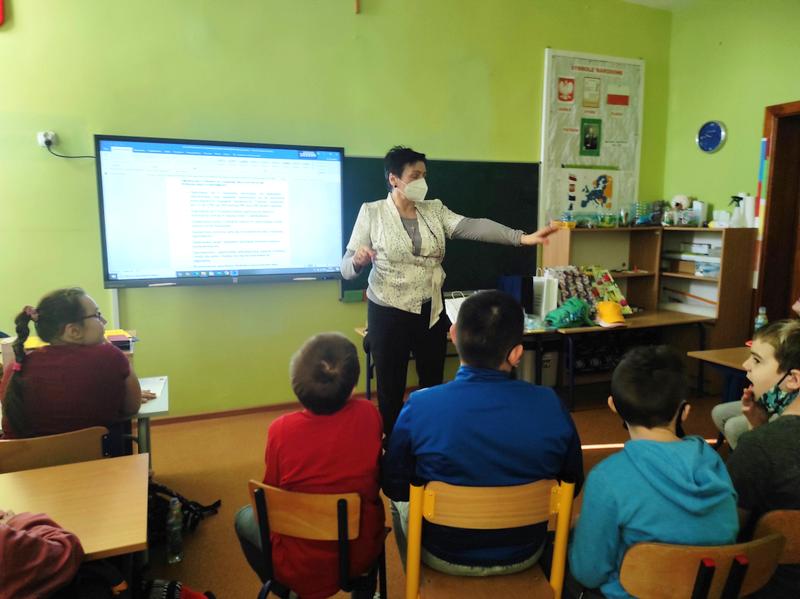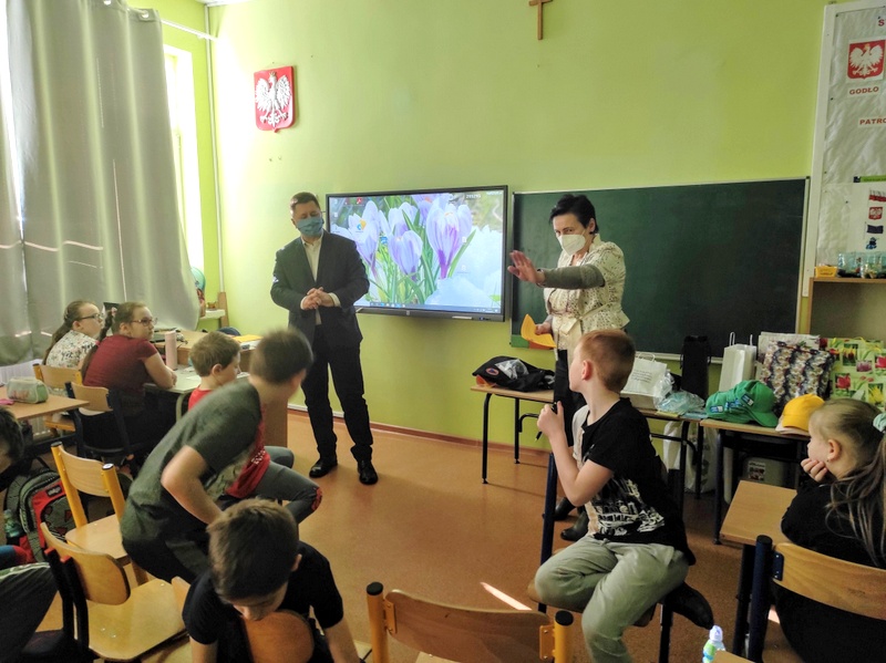 Klasa trzecia gościła dziś zastępcę wójta Gminy Kościan pana Mirosława Dudę oraz Inspektora do spraw obronnych i obrony cywilnej panią Bożenę Szczawik-Musiał. Uczniowie podczas pogadanki i prezentacji zapoznani zostali z ogólnymi celami obrony cywilnej w naszej gminie. Pani inspektor opowiedziała o rodzajach zagrożeń oraz sposobach reagowania na nie. Dzieci szczególnie zainteresowała ewakuacja zwierząt gospodarskich z podtopionych terenów w okolicach Łagiewnik i Sepienka w roku 2011.