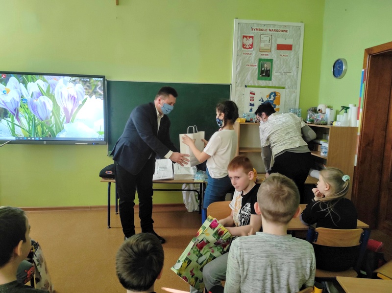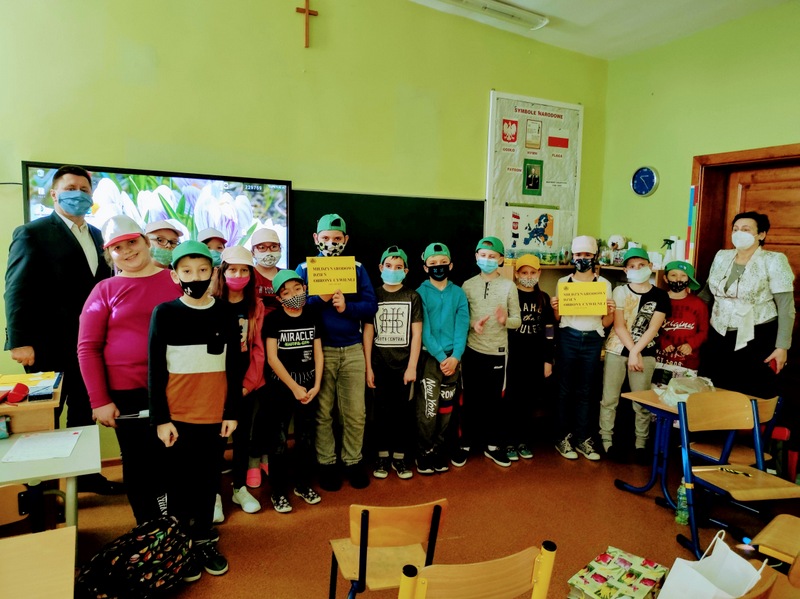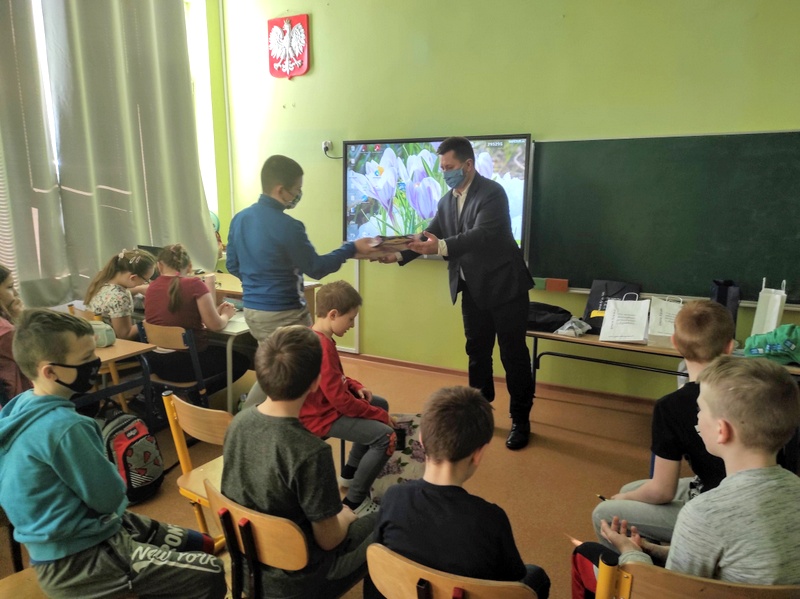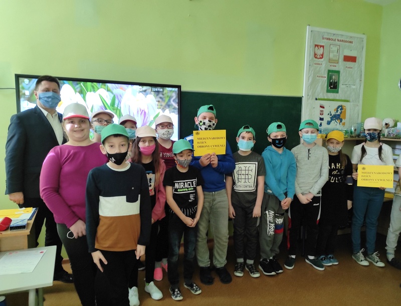 Na zakończenie prelekcji uczniowie odpowiadali pisemnie na pytania związane z obroną cywilną. Miłym akcentem spotkania było przekazanie dzieciom upominków: czapek, maseczek ochronnych oraz innych niespodzianek, które goście wręczyli wylosowanym osobom. Wójt i jednocześnie szef obrony cywilnej w naszej gminie wylosował dwa szczególne upominki: czujniki tlenku węgla, czyli czadu. Dzięki czujnikom rodziny Mariki i Jakuba będą mogli spokojnie korzystać z takich urządzeń jak: kocioł grzewczy, ogrzewacz wody, kominek, kuchenka gazowa, piec (niesprawne są często przyczyną wydzielania się tlenku węgla). Takie detektory czadu powinny znaleźć się w każdym gospodarstwie domowym!