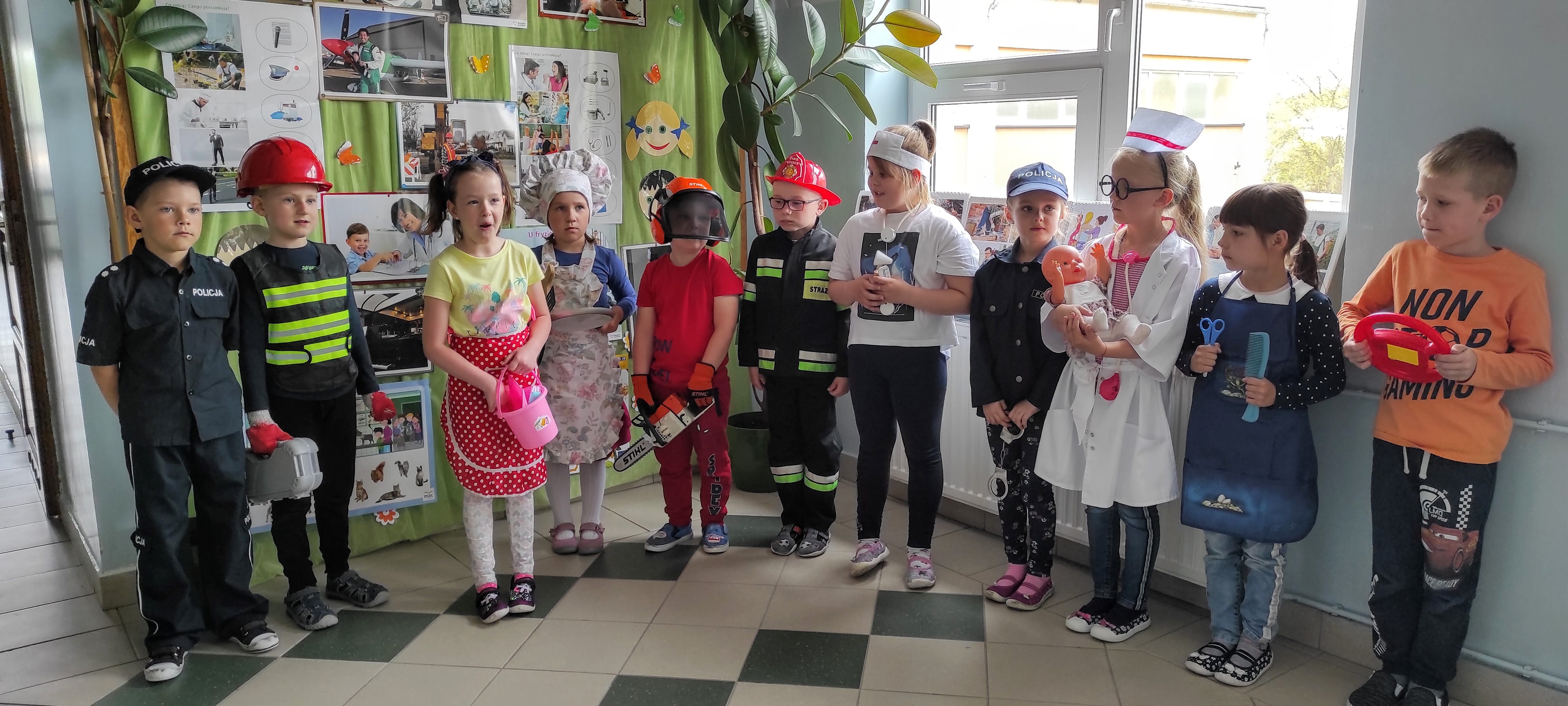 W środę zerówka wraz ze swoją panią zaprosiła klasę trzecią na spotkanie, prezentujące różne zawody. Dzieci wcieliły się w role pielęgniarki, pilarza, fryzjerki, kierowcy, policjantki i wielu innych zawodów. Pani Justyna Paterek przeprowadziła krótką pogadankę o zanikających już profesjach i tych wykonywanych aktualnie. Gratulujemy młodszym kolegom pomysłów i wykonanej pracy!