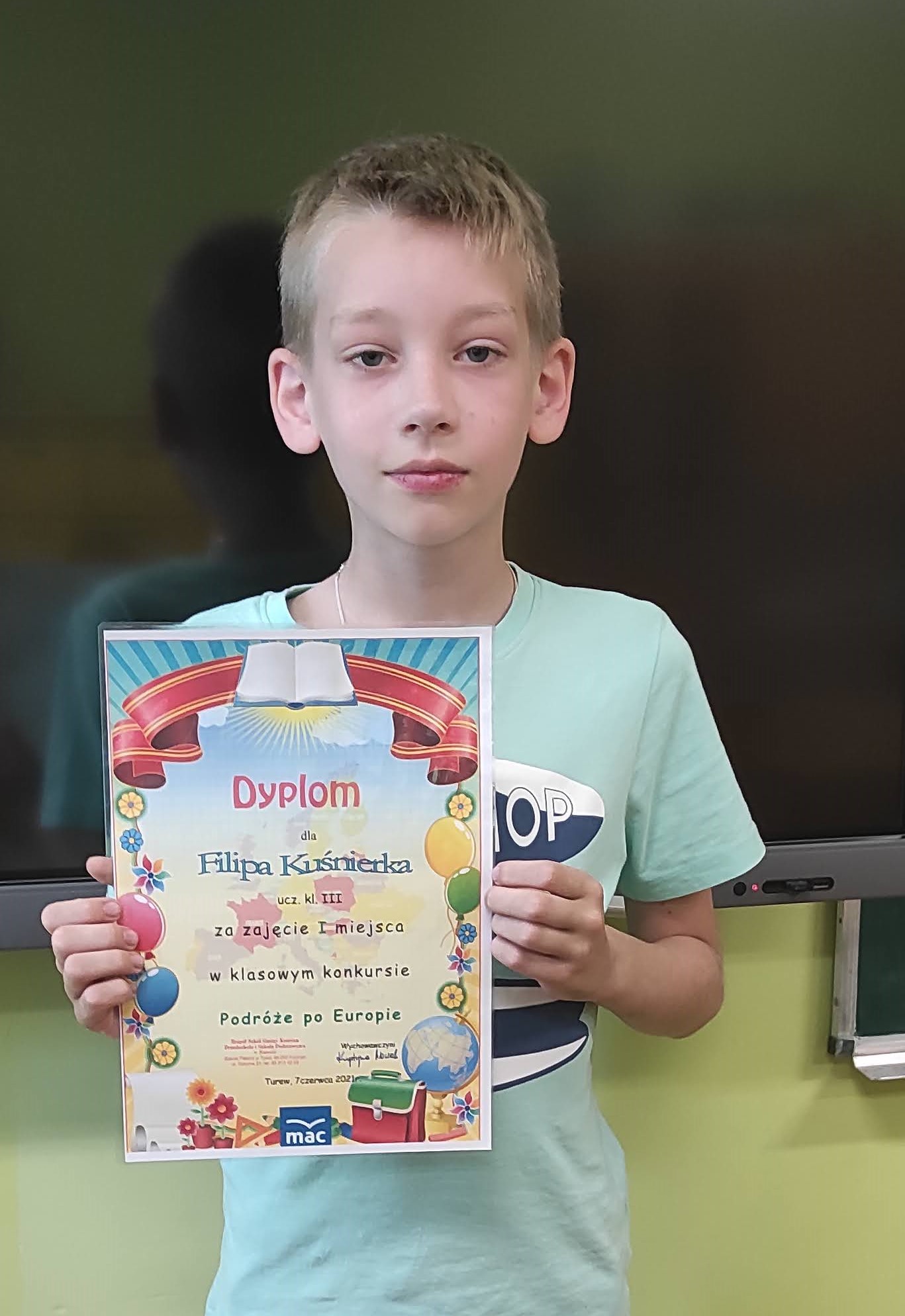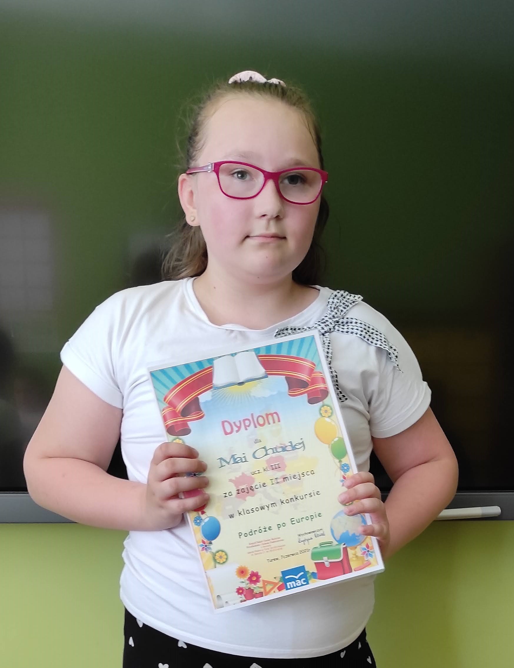 W klasie trzeciej odbył się konkurs Podróże po Europie. Przebiegał w dwóch etapach. Trzeba było wykazać się znajomością różnych ciekawostek dotyczących krajów europejskich, stolic, regionalnych potraw, klubów piłkarskich itp. Zwycięzcą okazał się Filip Kuśnierek, drugie miejsce przypadło Majce Chudej, a trzecie Marice Itkowiak. Cała trójka otrzymała pamiątkowe dyplomy wręczone przez wychowawcę Krystynę Nowak.