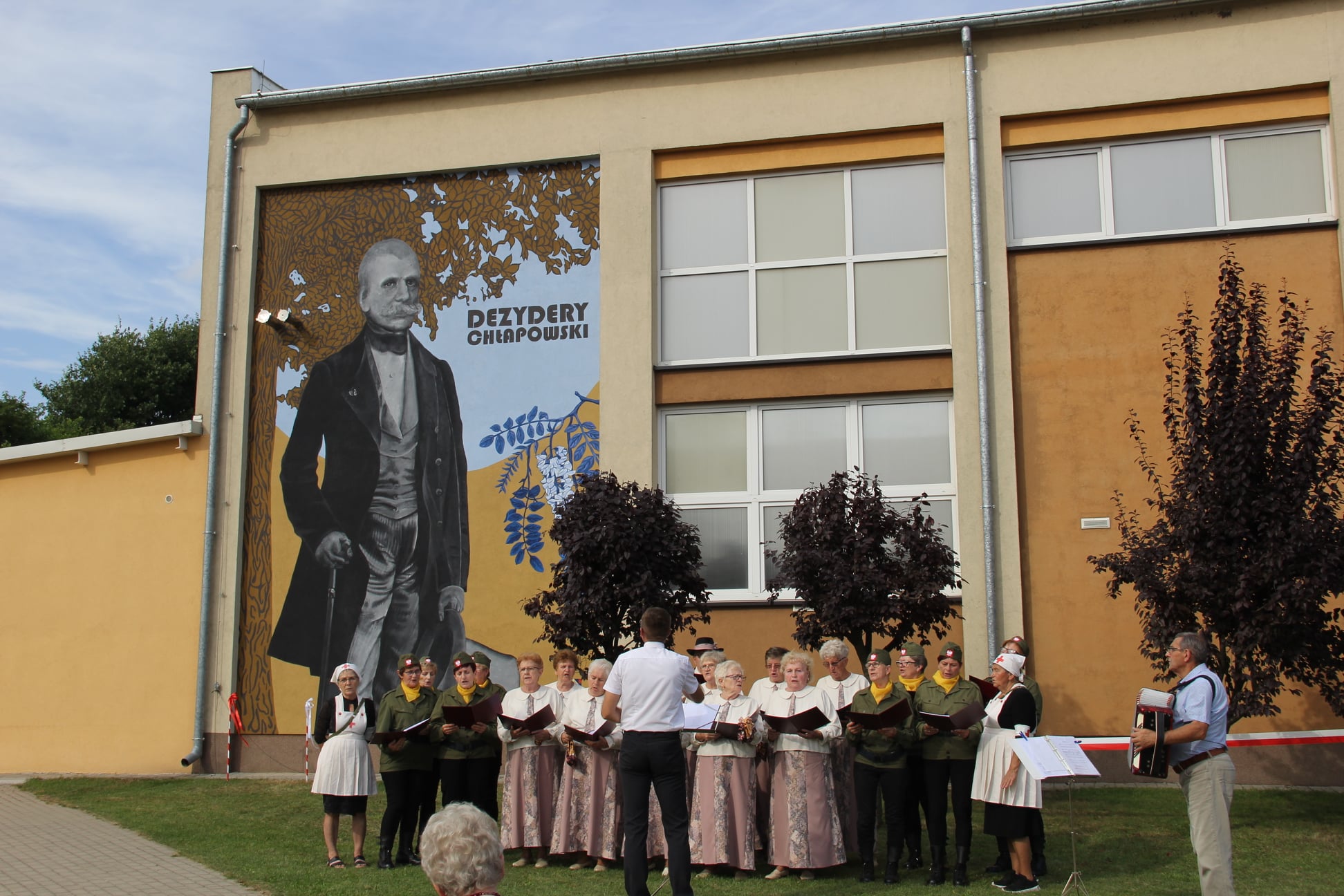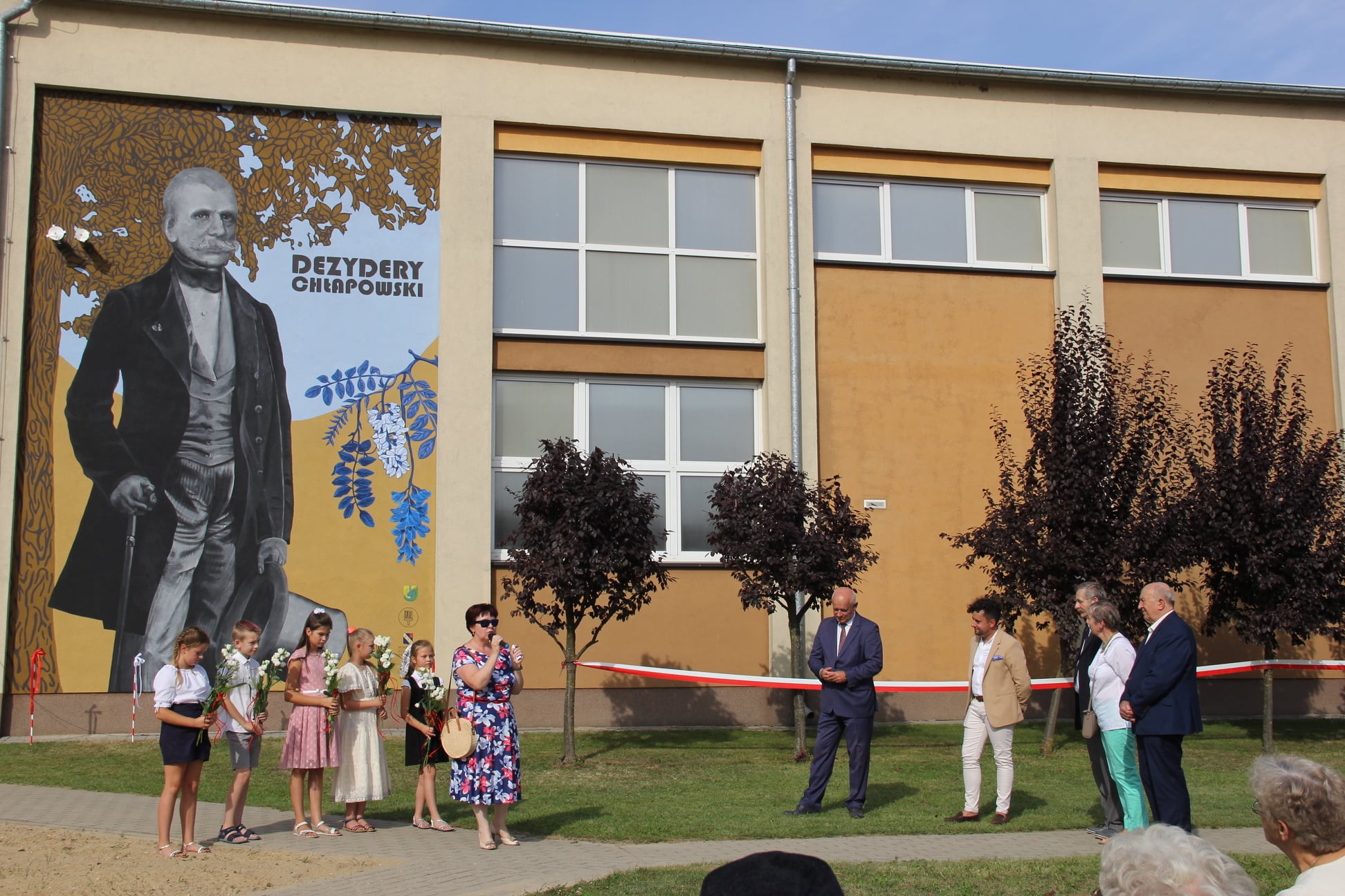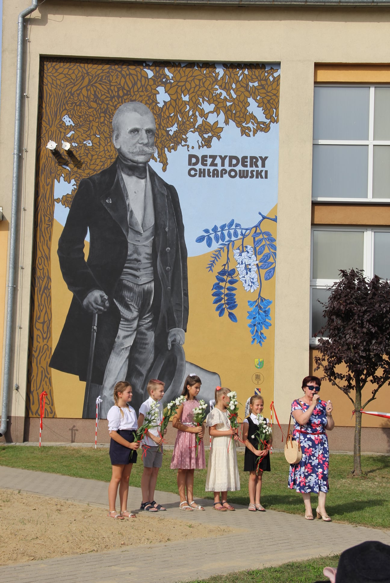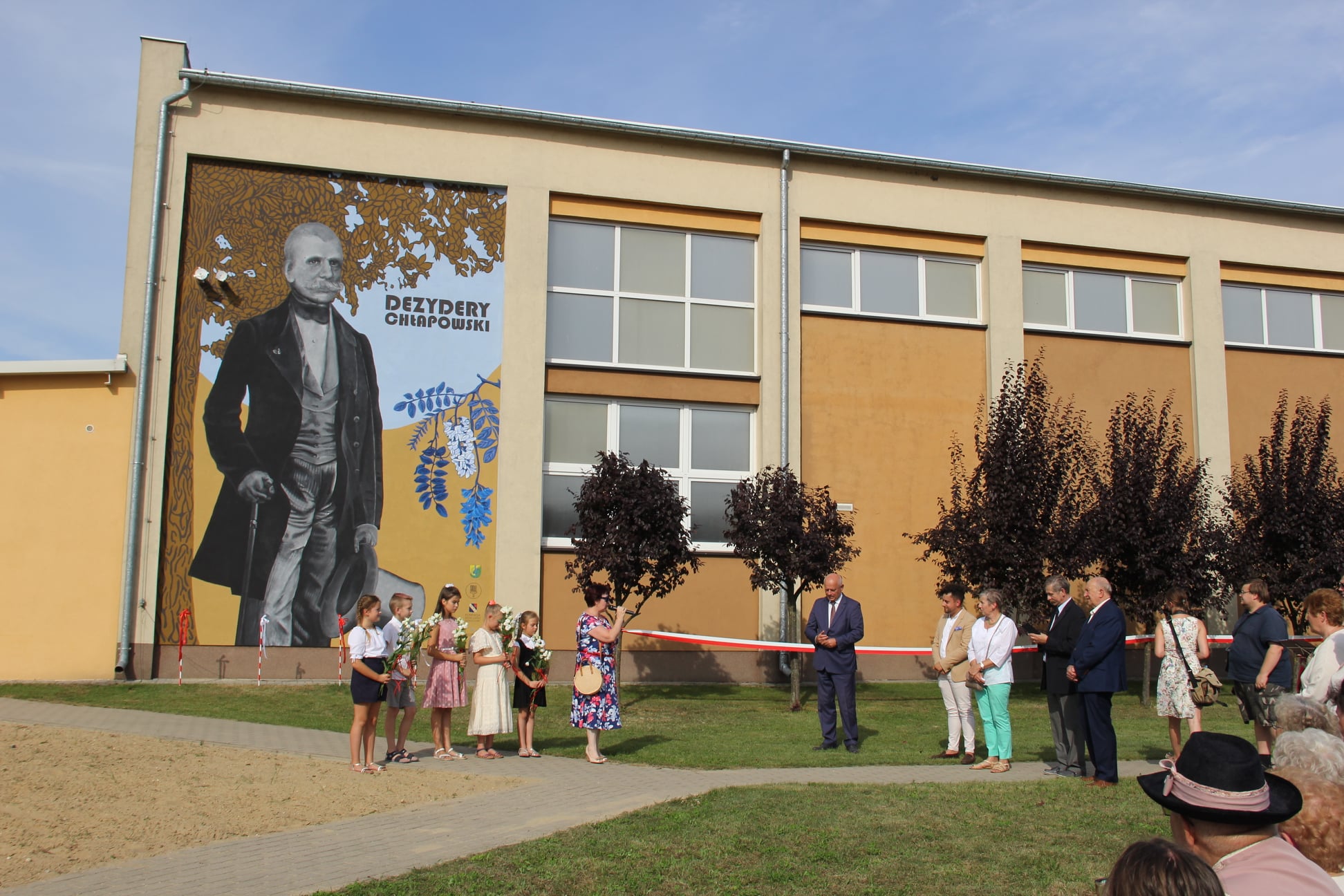 W niedzielę, 15 sierpnia w naszej szkole miało miejsce wyjątkowe wydarzenie. Wydarzeniem tym było odsłonięcie muralu naszego Patrona gen. Dezyderego Chłapowskiego. Mural powstał z inicjatywy pana doktora Emiliana Prałata i Fundacji BONUM ADIPISCI -DĄŻYĆ DO DOBRA. Finansowo przedsięwzięcie zostało wsparte przez wspomnianą fundację i Gminę Kościan. Dobrym duchem i organizatorem całej uroczystości był Emilian Prałat – absolwent naszej szkoły, społeczny opiekun zabytków, autor wielu książek o rodzie Chłapowskich i okolicznych miejscowościach w tym Turwi.