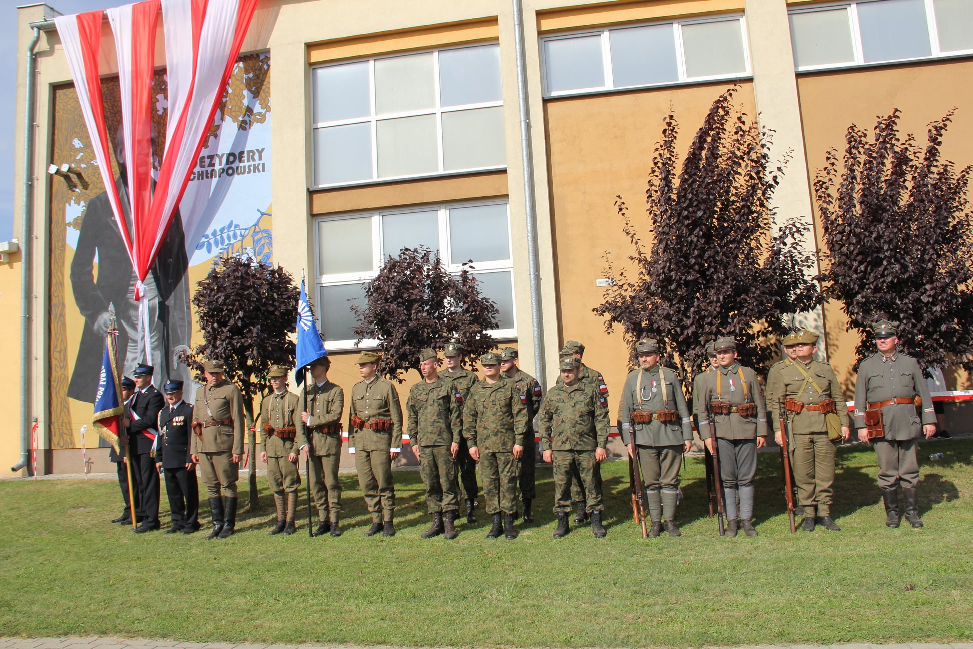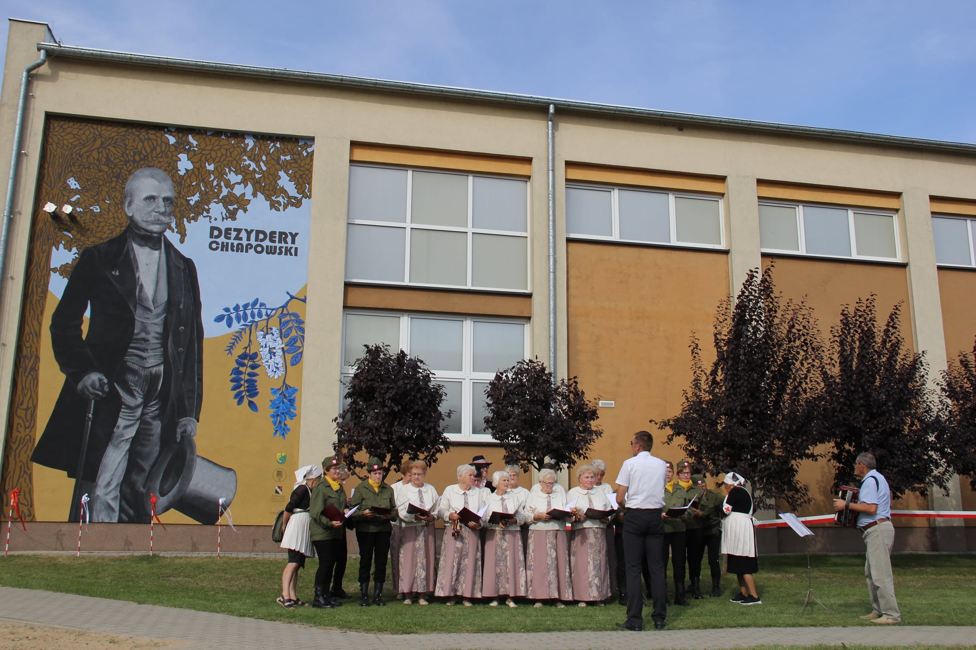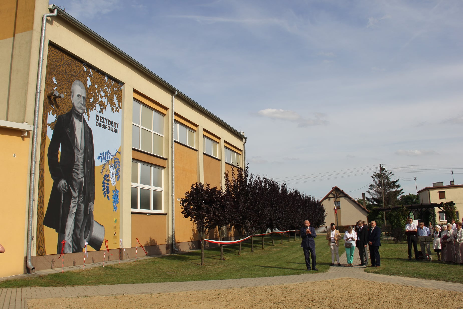 Uroczystość składała się z dwóch części. Jedna związana z obchodami Dnia Wojska Polskiego miała miejsce przy pomniku upamiętniającym ofiary wojen 1914-1920, druga część odbyła się na placu rekreacyjnym przed szkołą na tle wspaniale prezentującego się muralu. Malowidło ma wymiary 4,50 m na 6,70 m. Wykonane zostało przez Studio MUR-ALL. Aktu odsłonięcia dokonali: wójt Gminy Kościan pan Andrzej Przybyła, przedstawiciele rodu Chłapowskich i Fundacji Dążyć do Dobra, dyrektor szkoły i pomysłodawca wyboru gen. Chłapowskiego na Patrona szkoły pan Edmund Wesołek oraz uczennica Iga Zmarz.
