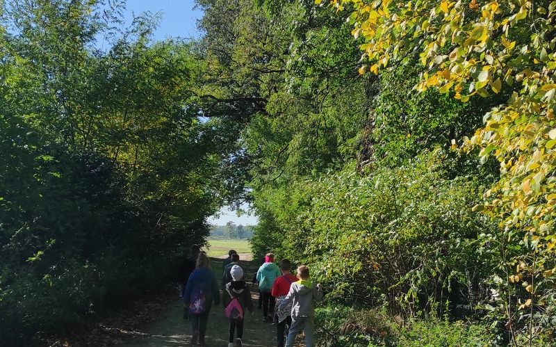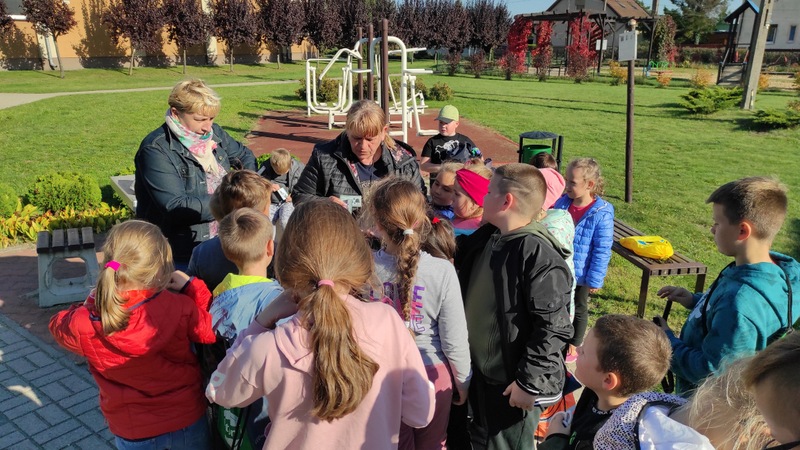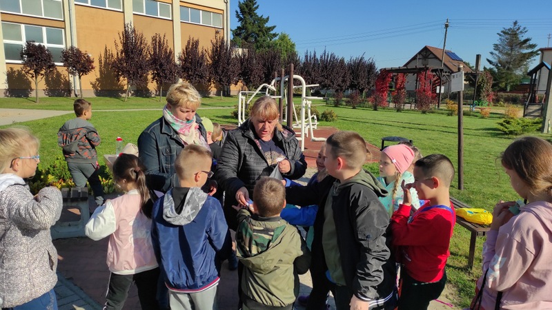 W słoneczne jesienne popołudnie po lekcjach wybraliśmy się na rajd szlakiem gen. D. Chłapowskiego. Rajdy Chłapowskiego to u nas tradycja, niestety drugi rok z rzędu za sprawą covidu rajd organizowany przez PTTK nie odbył się. W wycieczce uczestniczyły wszystkie klasy. Uczniowie podzieleni zostali na grupy, ponieważ połączyliśmy rajd z zabawą w podchody. Zabawa była pretekstem, by utrwalić wśród uczniów wiadomości o Patronie. Było więc zadanie, by z materiałów przyrodniczych ułożyć postać generała, były pytania o pasy wiatrochronne, fakty z życia, zwierzęta i rośliny Parku Krajobrazowego. Po krótkim odpoczynku i posiłku pod byłą siedzibą Chłapowskiego odśpiewaliśmy Pieśń o Patronie. Dzieciom taka forma spędzenia czasu przypadła do gustu i już zaplanowaliśmy wstępnie kolejną wyprawę ścieżkami naszego Patrona. Na zakończenie rajdu wszyscy uczestnicy otrzymali pamiątkowe plakietki.