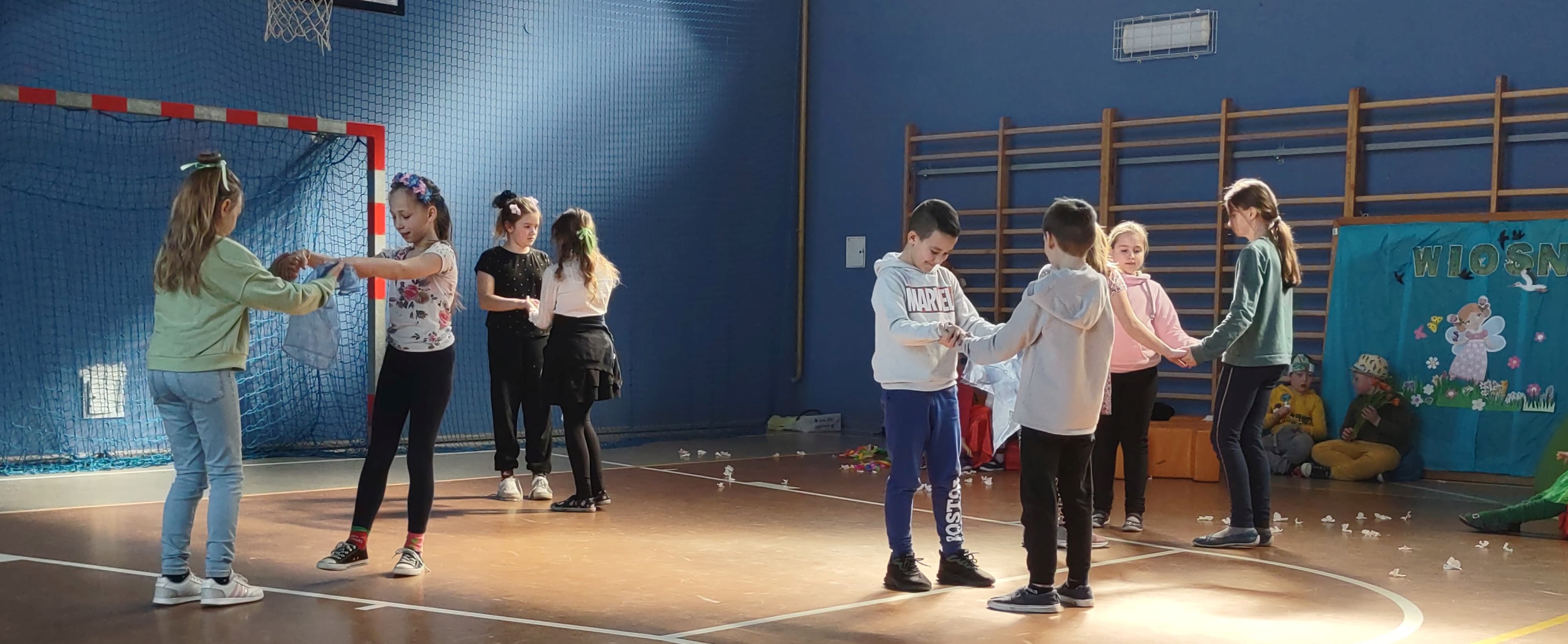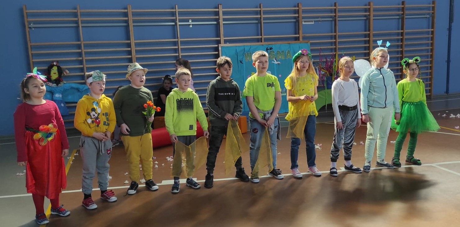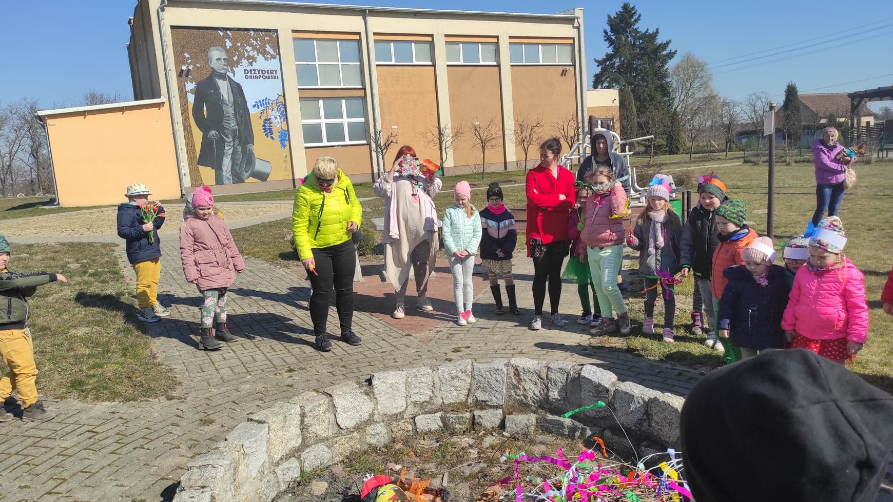 Przedtem jednak w sali gimnastycznej każda grupa na swój sposób zaakcentowała koniec zimy i rozpoczęcie wiosny. Uczniowie z kółka przyrodniczego przedstawili inscenizację wg Jana Brzechwy „Przyjście wiosny”, zerówka i każda klasa zaśpiewały wiosenne piosenki, a klasa trzecia zatańczyła taniec do piosenki „Już wiosna, hej!” Towarzyszył nam radosny nastrój. Kukła marzanna symbolizująca zimę została spalona, a my póki co czekamy na ciepło, zieleń, ptaki i kwiaty.