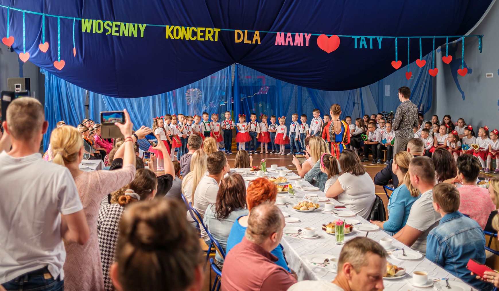W środę, 25 maja zaprosiliśmy Rodziców na koncert z okazji zbliżających się: Dnia Mamy i Taty. Koncert składał się z trzech części: występów dzieci, występu mam w spektaklu „Kaczka Dziwaczka” oraz części sportowej. Dzieci pod kierunkiem wychowawców wykonali też dla swoich rodziców przeróżne upominki. W organizację imprezy włączyli się wszyscy nauczyciele i pracownicy szkoły.