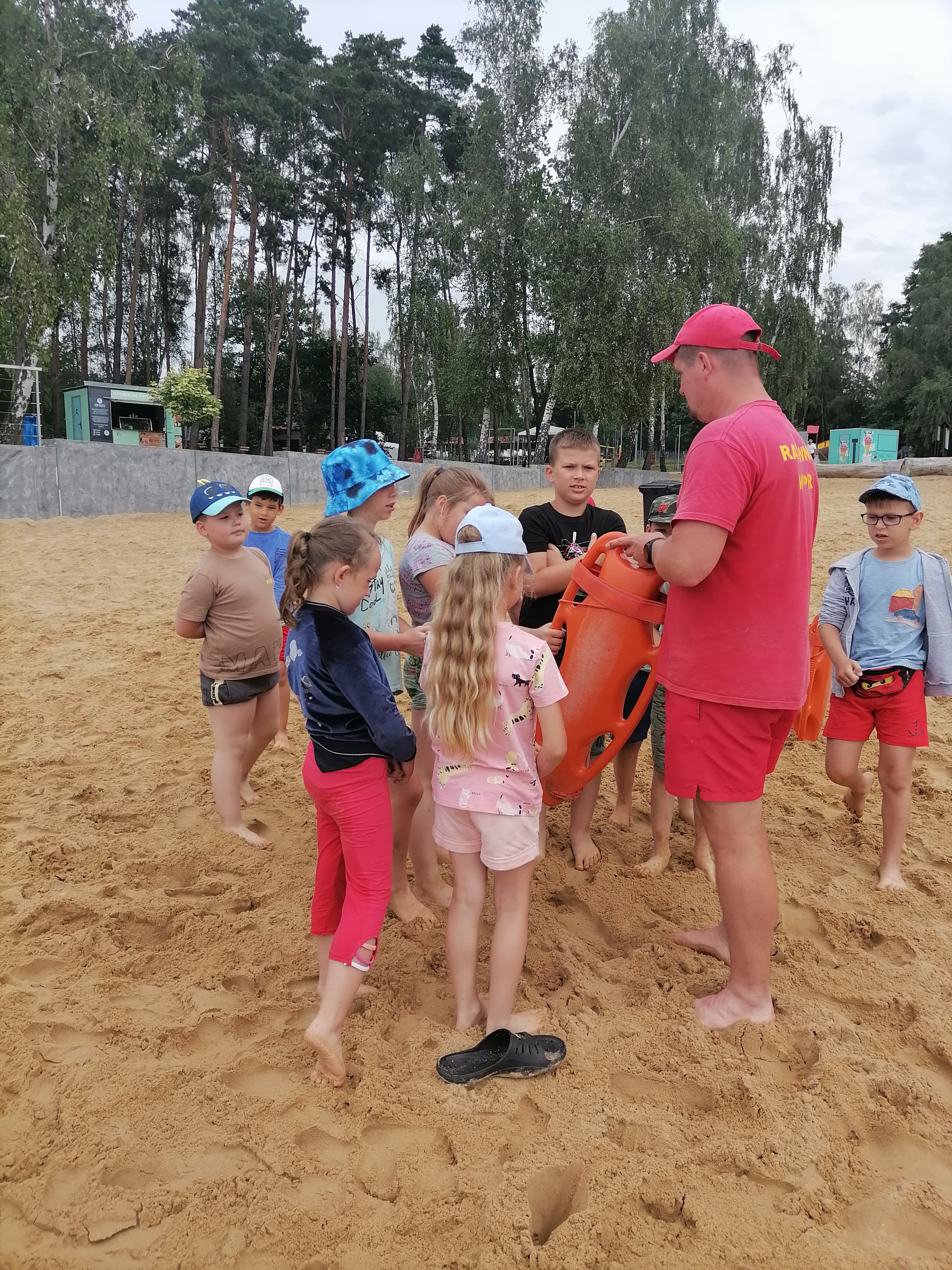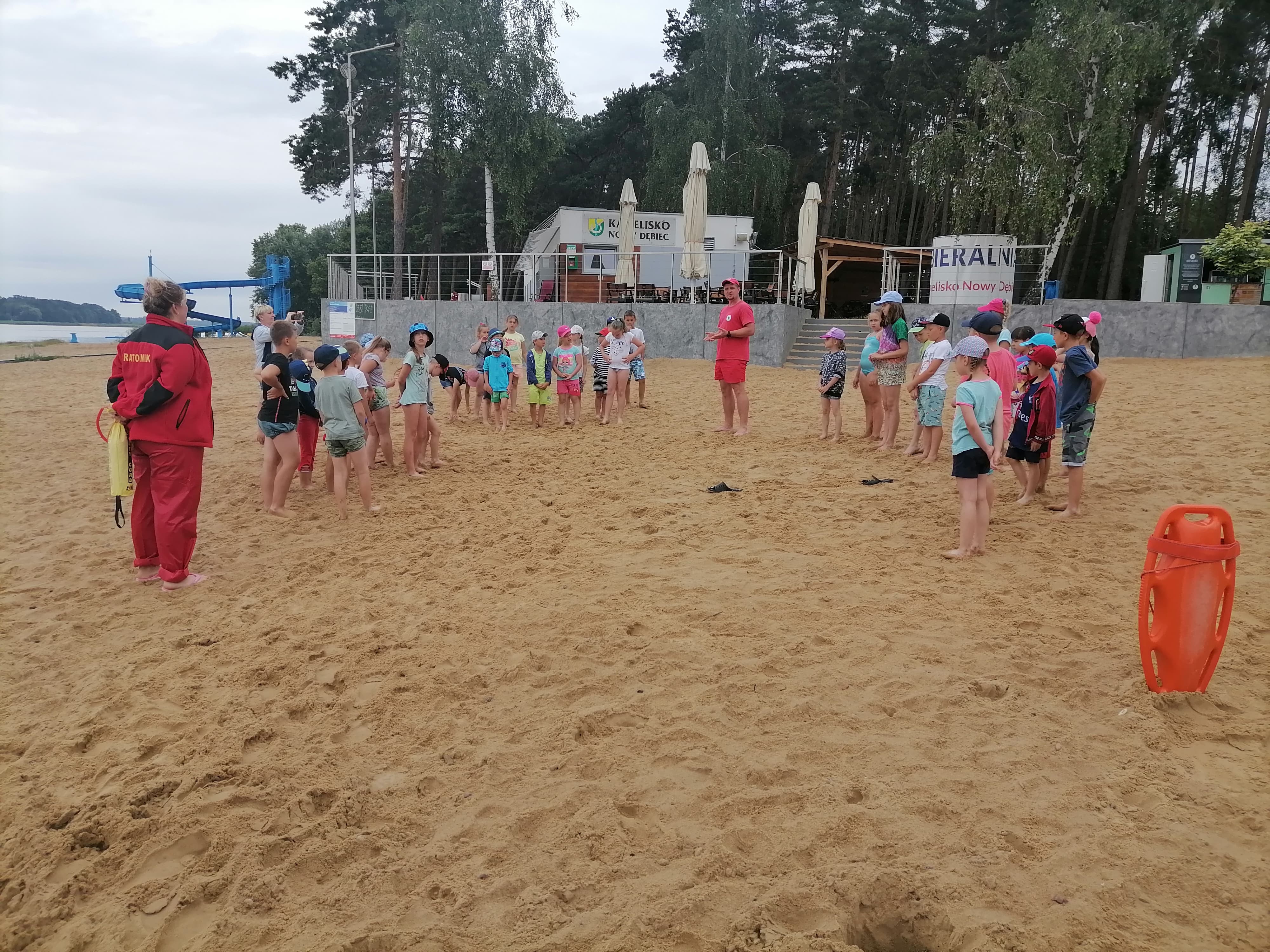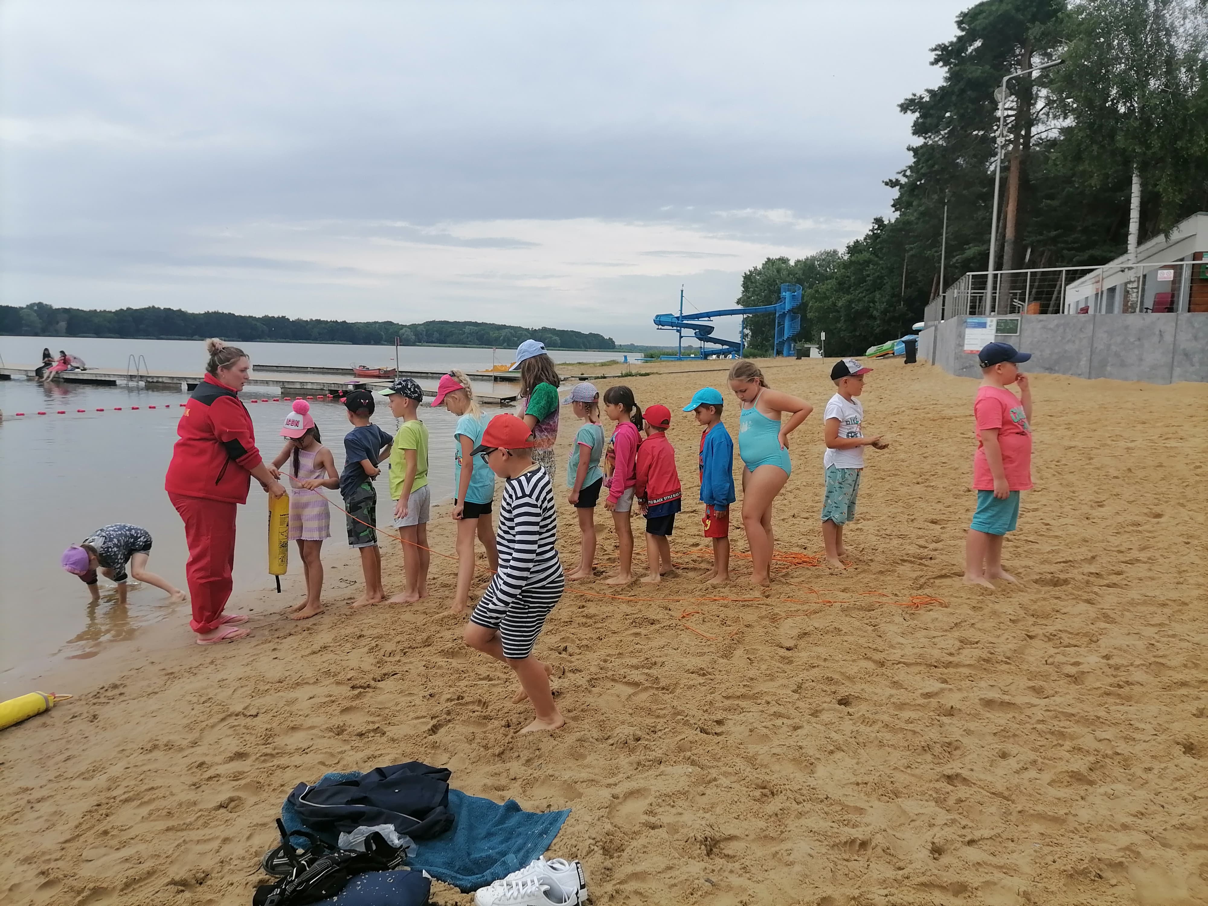Czas nad Jeziorem Wonieskim był spędzony aktywnie i pożytecznie. Została pokazana lekcja ratownictwa wodnego, dzieci współpracowały ze sobą, podczas ratowania tonącej osoby.