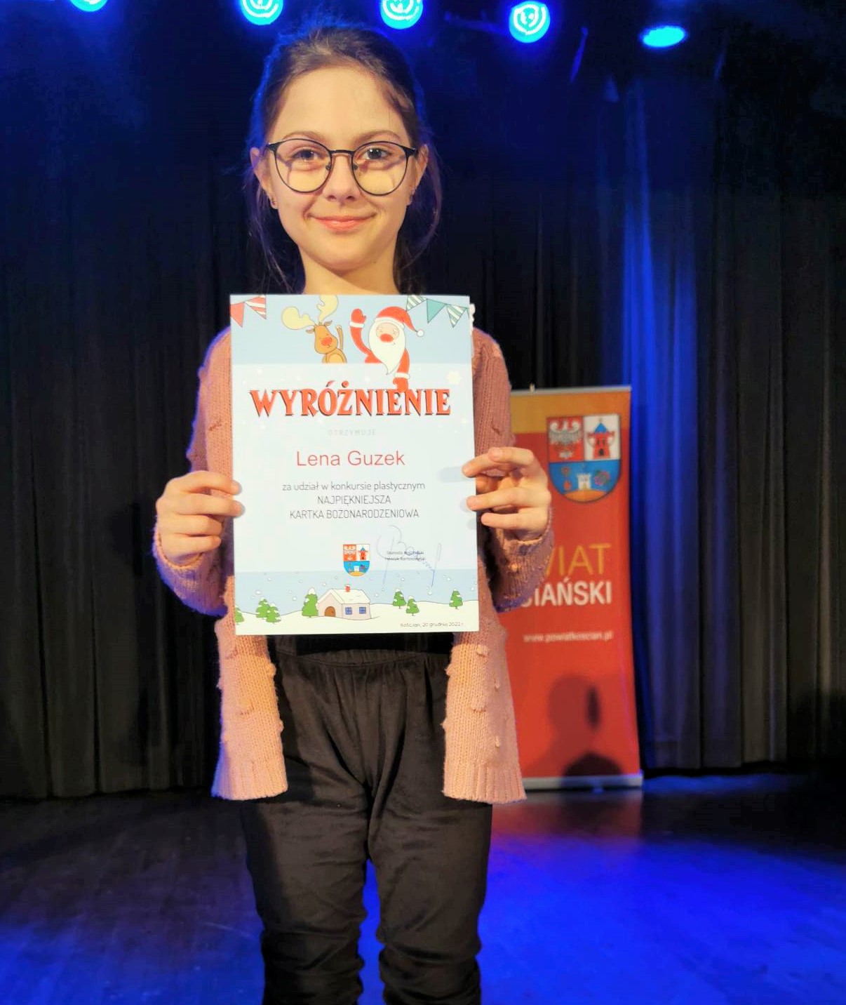 wraz ze swymi opiekunami zostali zaproszeni do Kościańskiego Ośrodka Kultury na ogłoszenie wyników. Wśród wyróżnionych znalazła się praca uczennicy klasy trzeciej Leny Guzek. Serdecznie gratulujemy wszystkim wyróżnionym i życzymy czerpania przyjemności w działalności artystycznej.