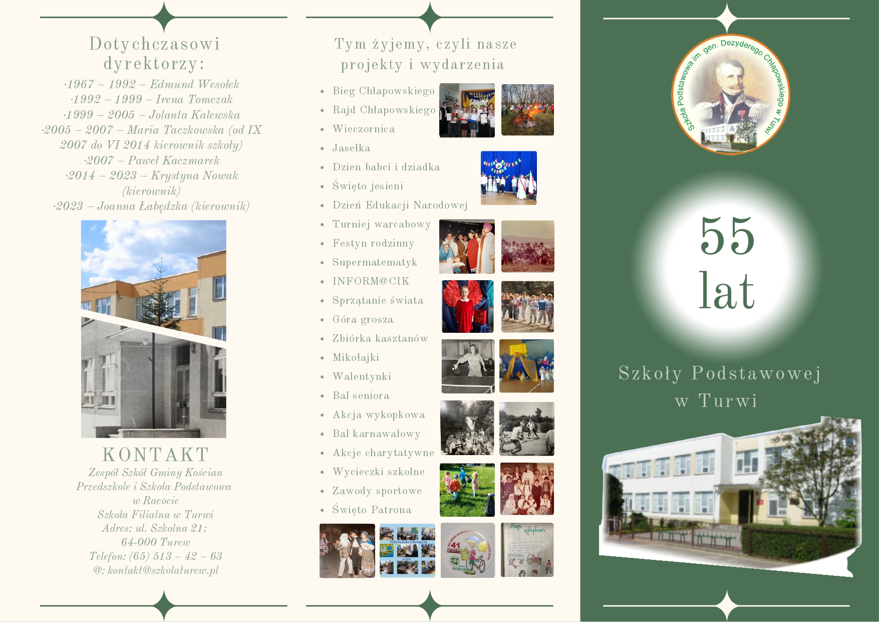 10 listopada 2023 roku na długo zapisze się w naszej pamięci. Tego dnia poza corocznym obchodem Narodowego Święta Niepodległości przeżywaliśmy także jubileusz 55-lecia funkcjonowania naszej szkoły. Uroczystość zgromadziła wielu gości. Wśród nich byli przedstawiciele władz, byli dyrektorzy i kierownicy placówki, pracownicy aktualni i emerytowani, mieszkańcy Turwi i wszyscy, którzy w jakikolwiek sposób czują więź z turewską szkołą.