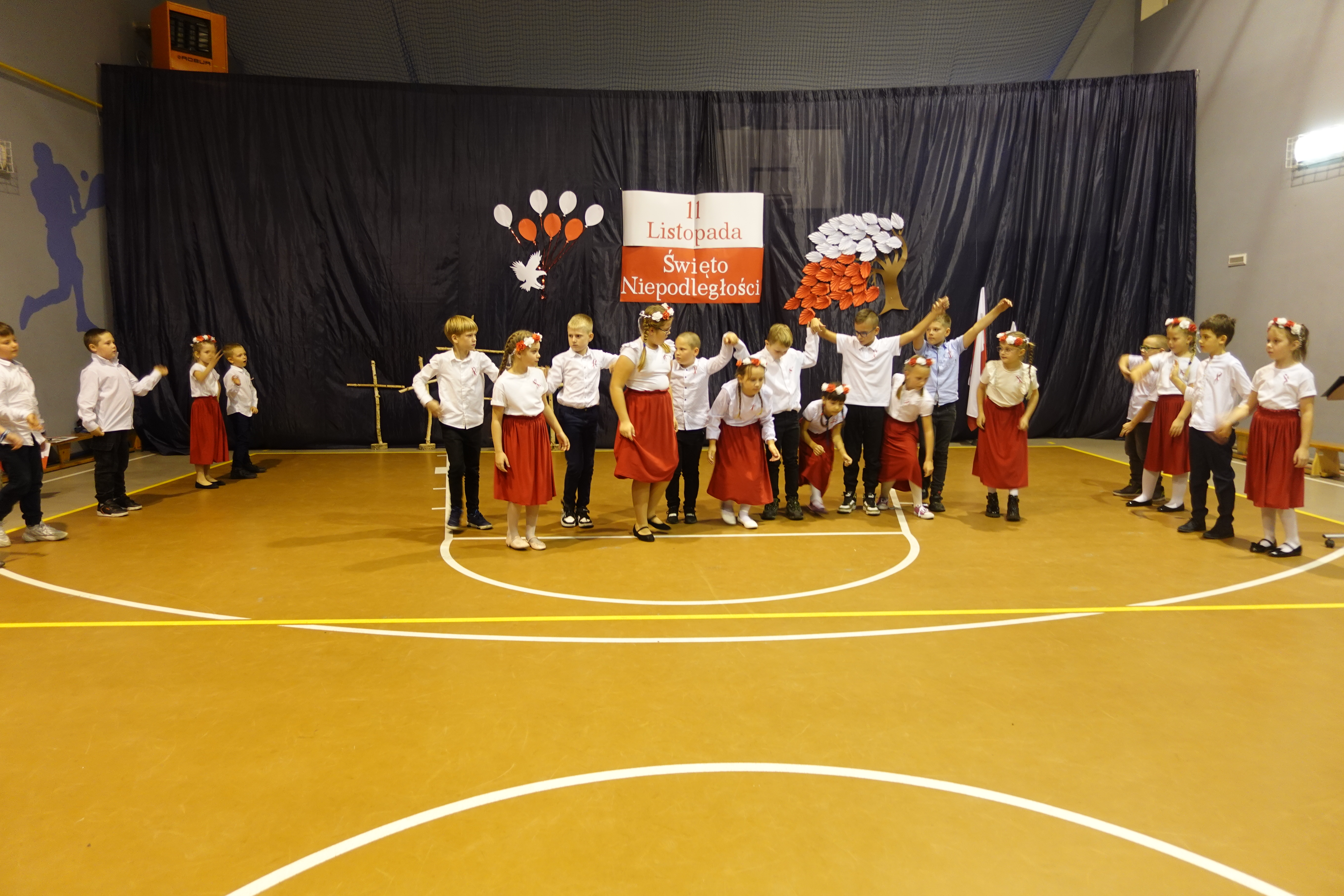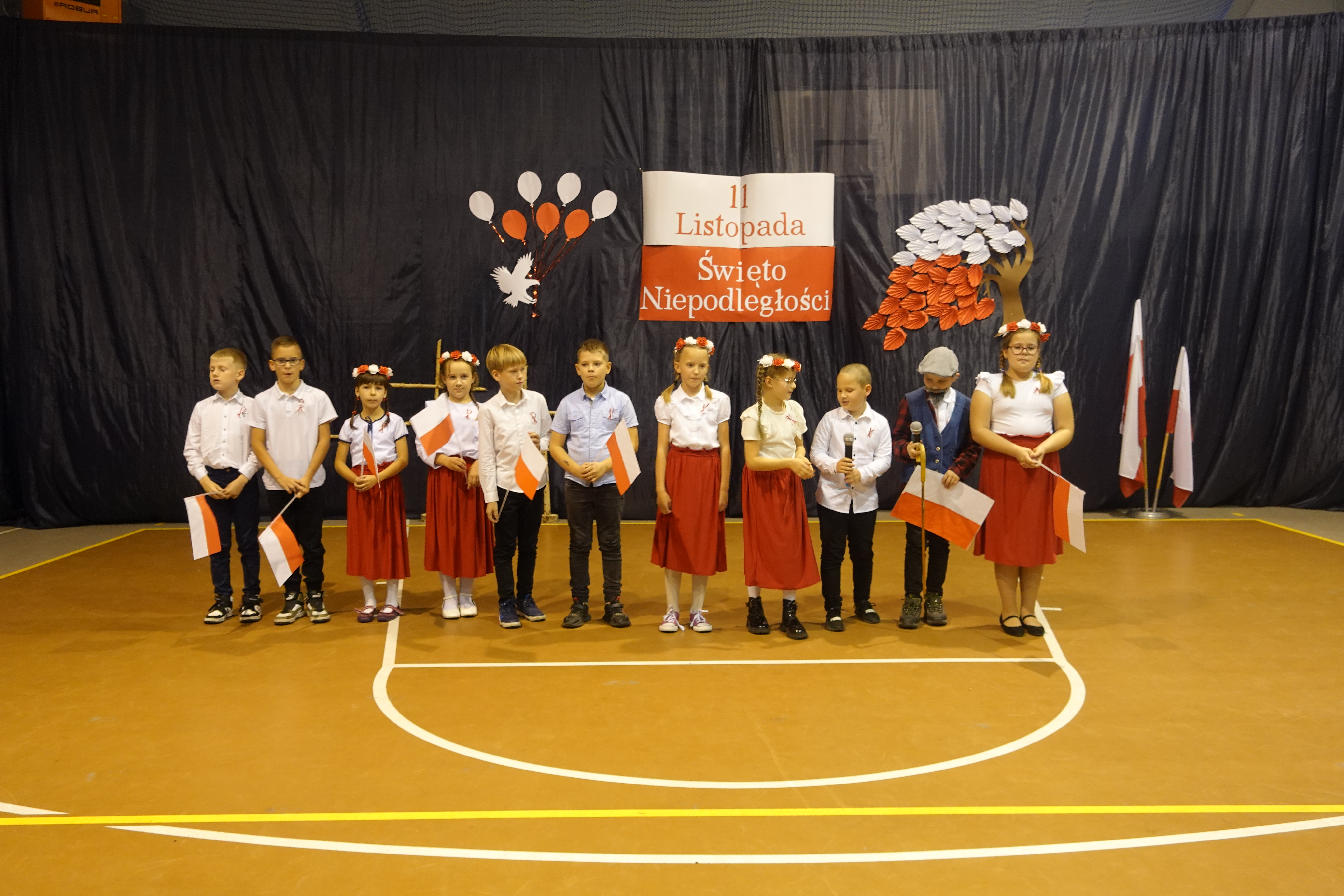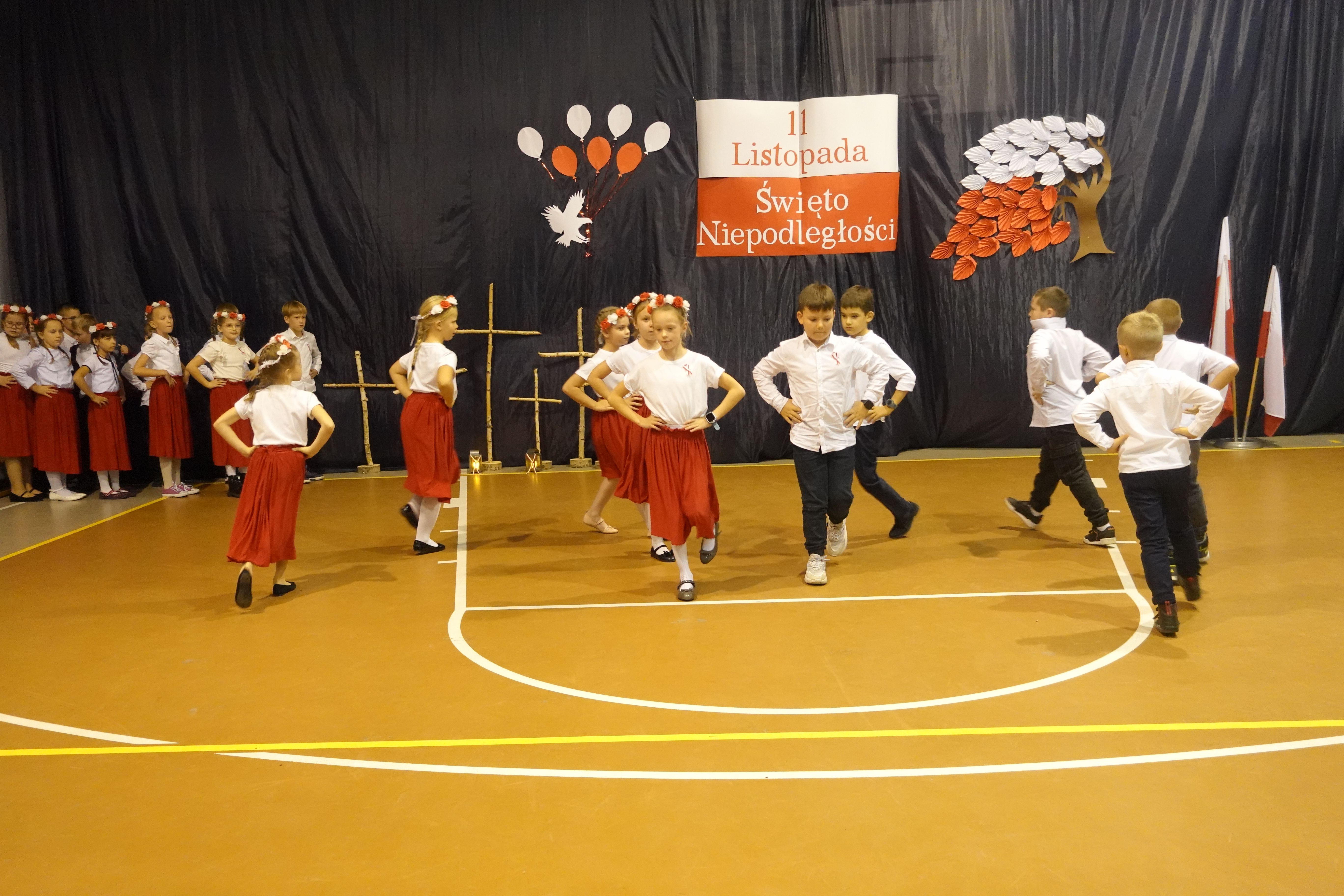 Część artystyczna obejmowała występy uczniów, którzy słowem, piosenką i tańcem ukazali swoje przywiązanie do Ojczyzny i patriotyzm.