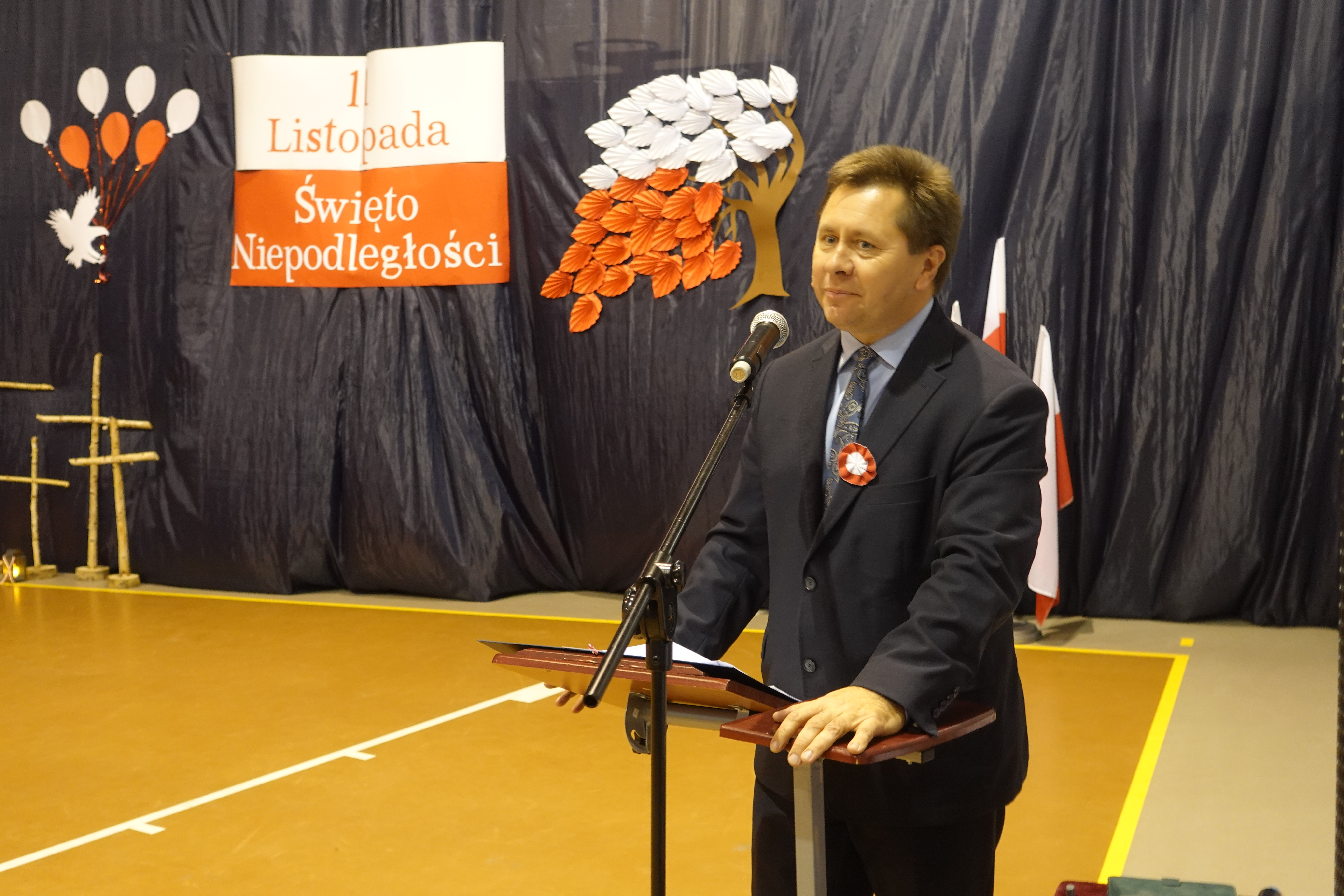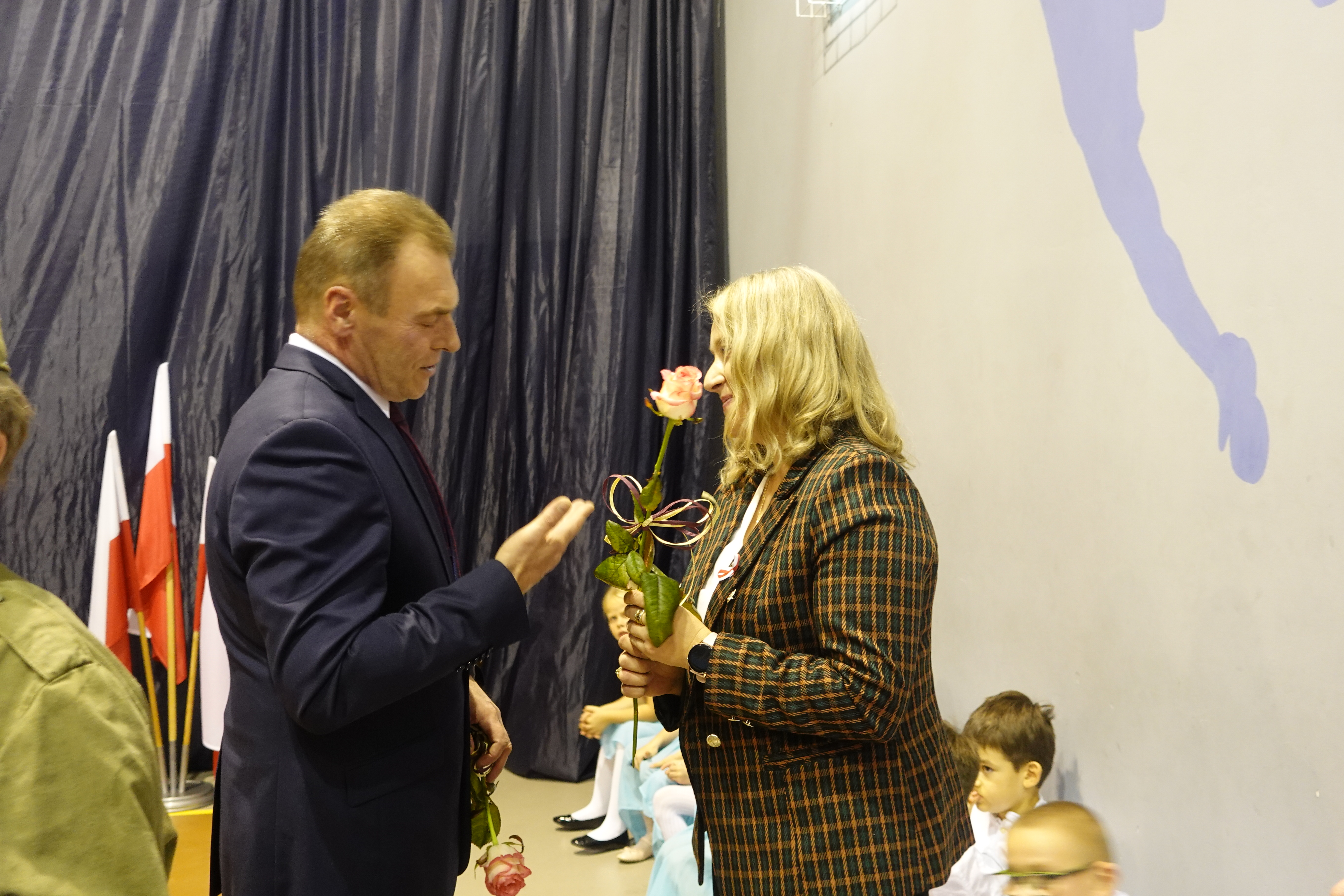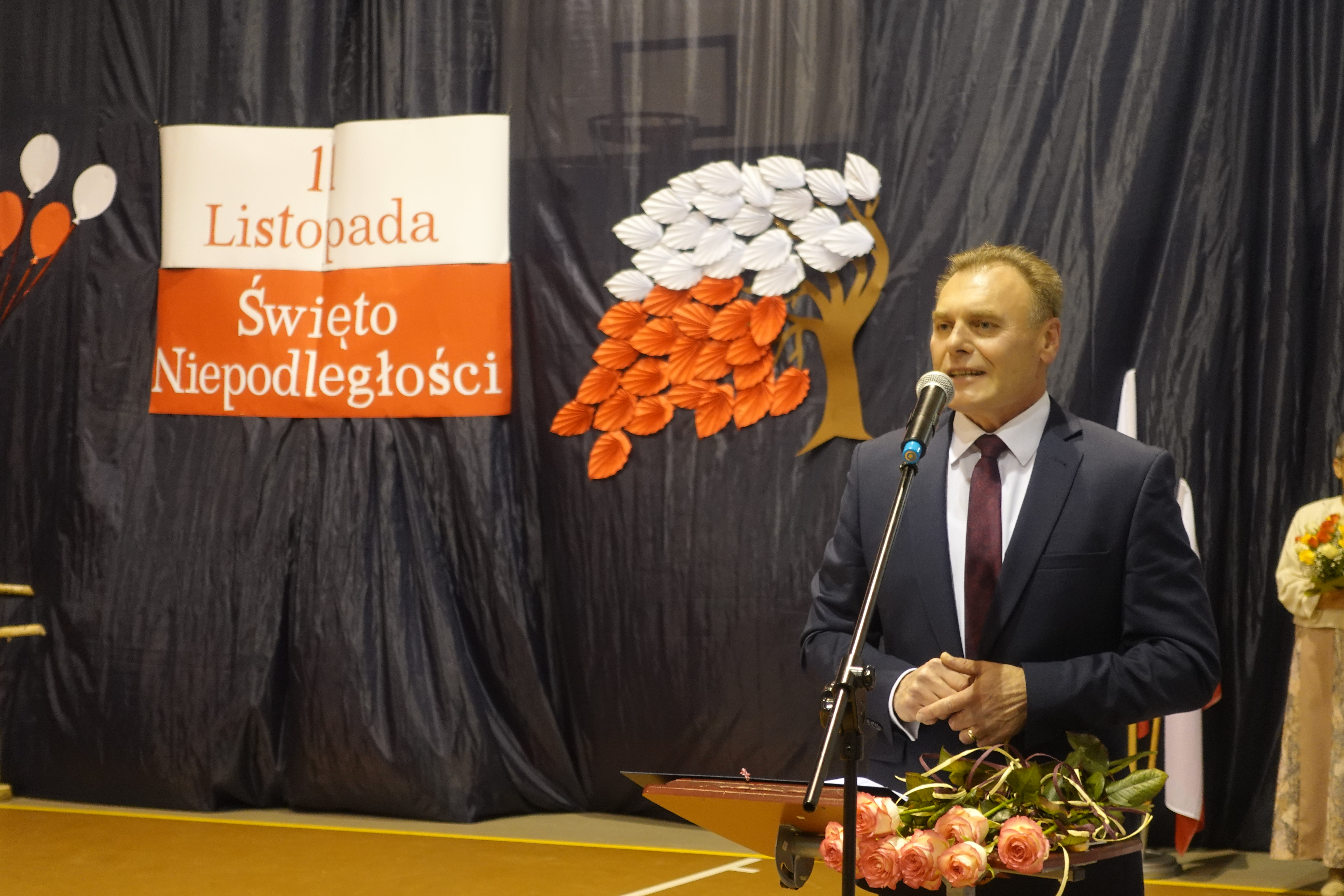 Swoje życzenia z okazji jubileuszu szkoły oraz gratulacje udanego występu wyraził pan zastępca wójta gminy Kościan Mirosław Duda.