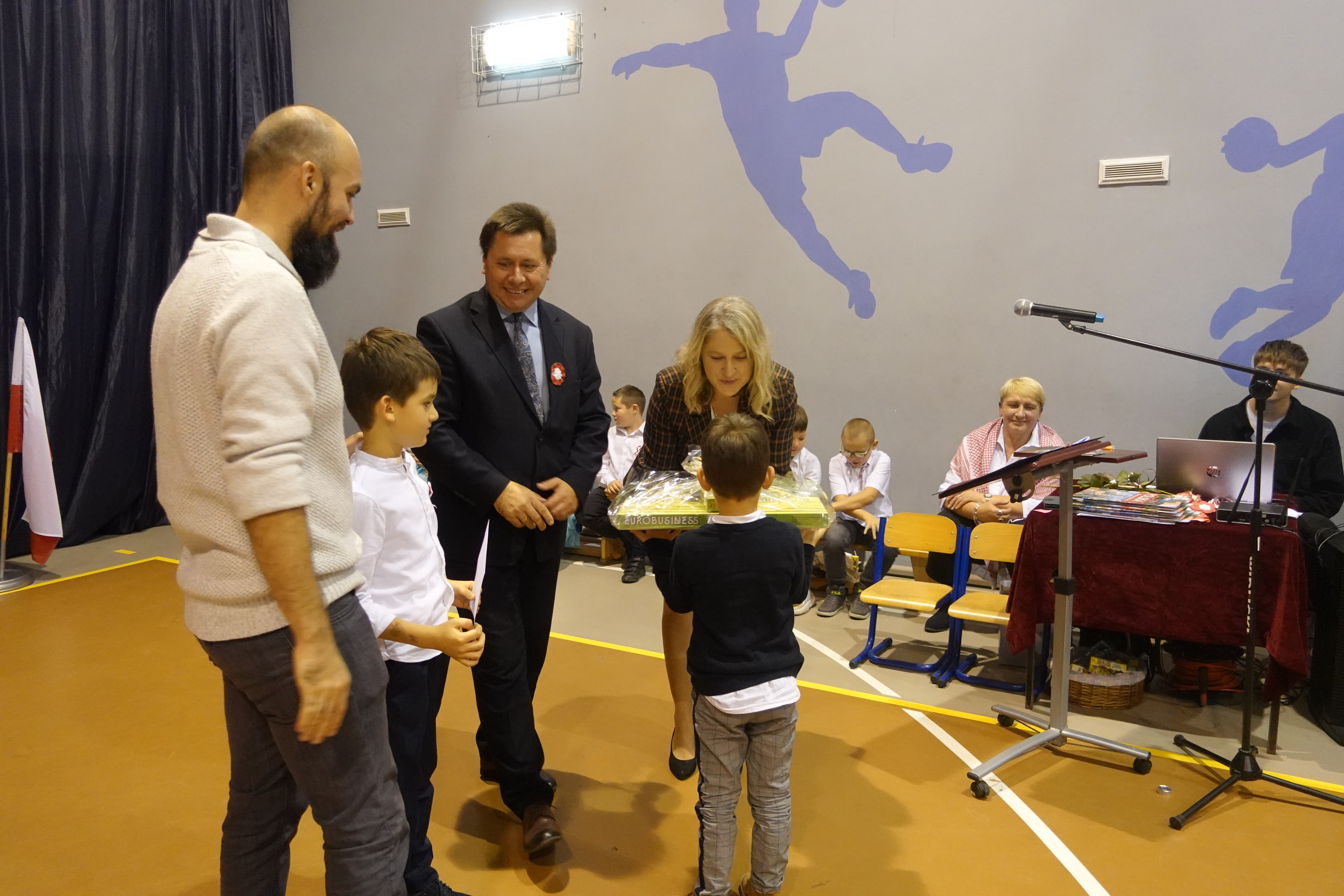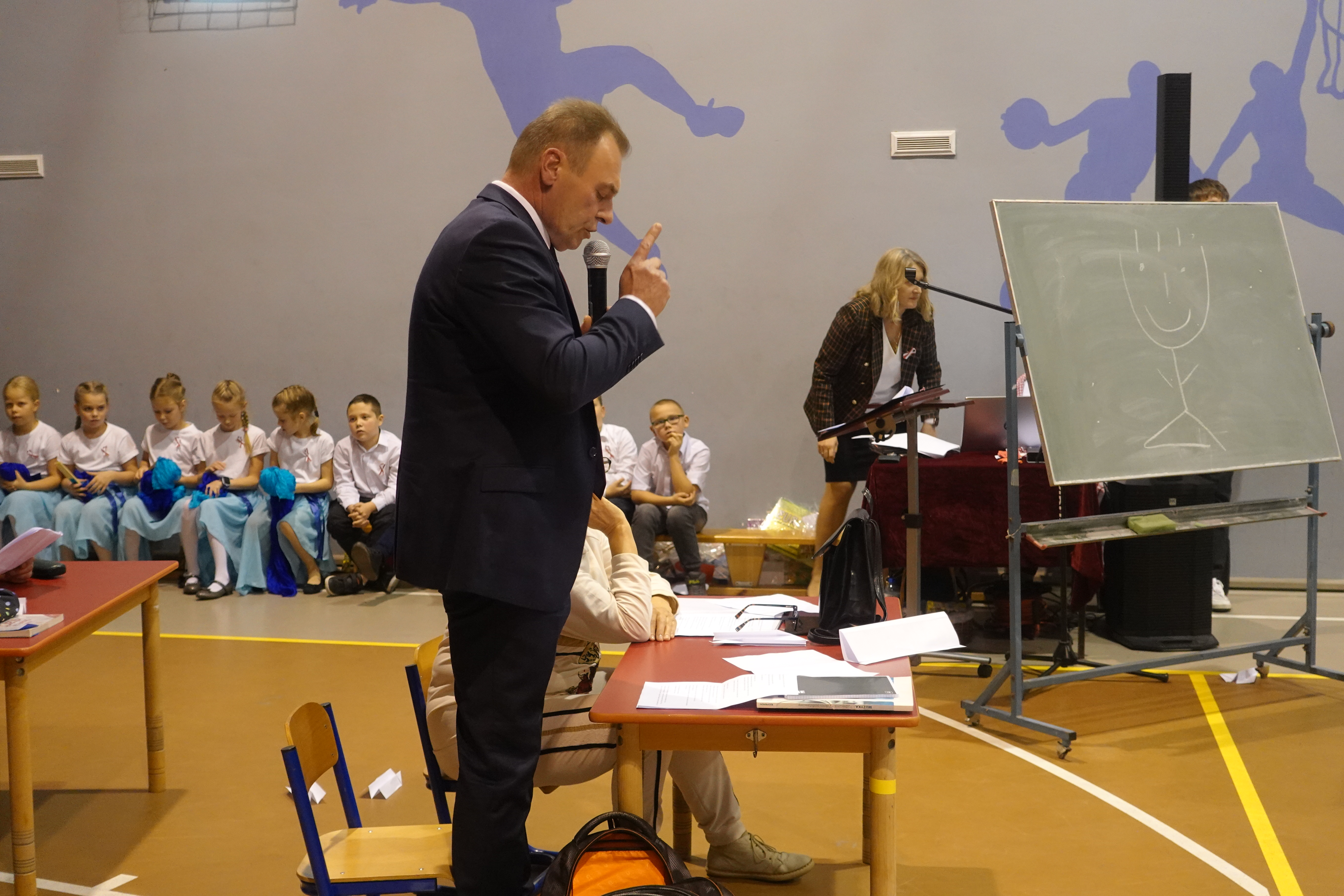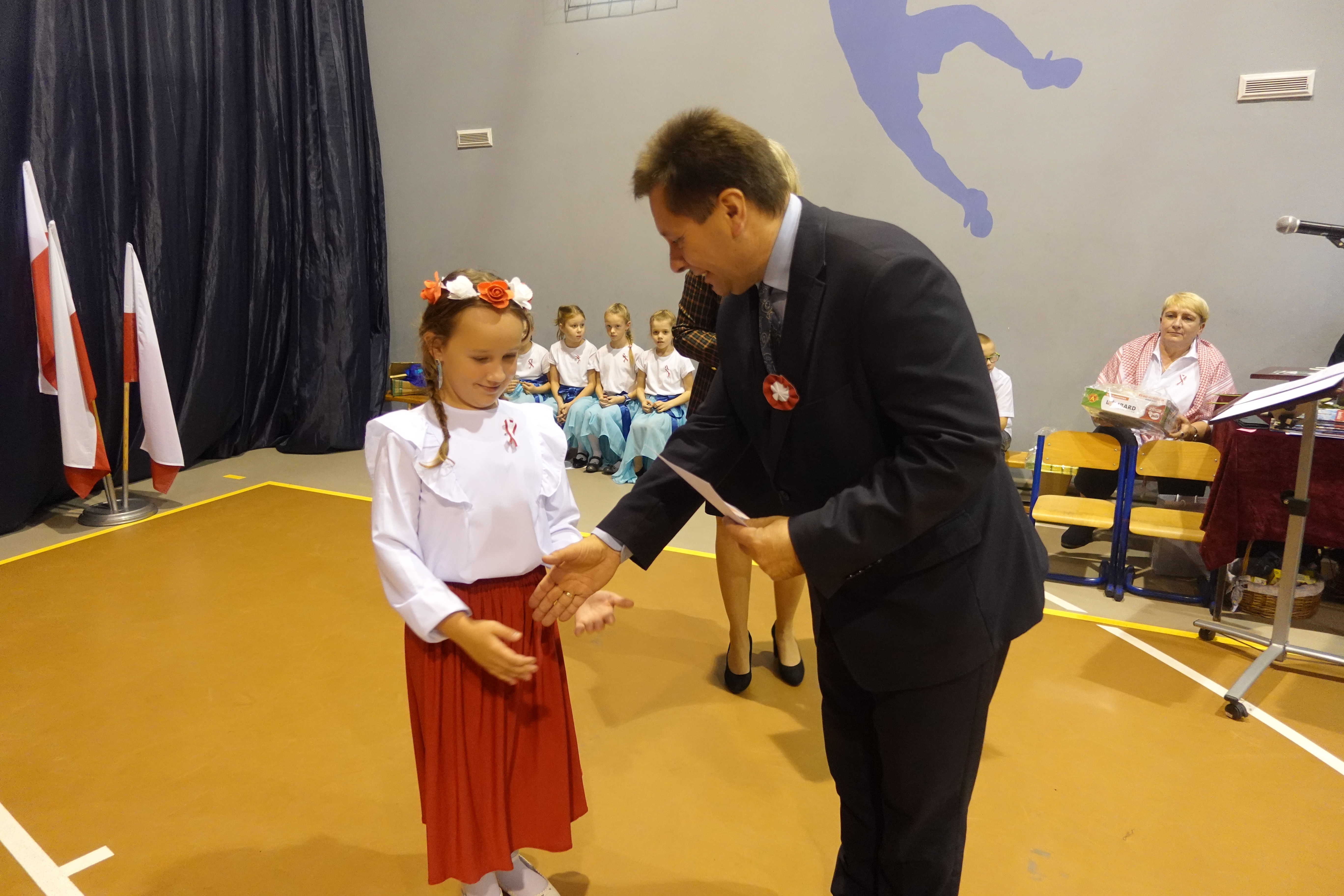 Swoje życzenia z okazji jubileuszu szkoły oraz gratulacje udanego występu wyraził pan zastępca wójta gminy Kościan Mirosław Duda.