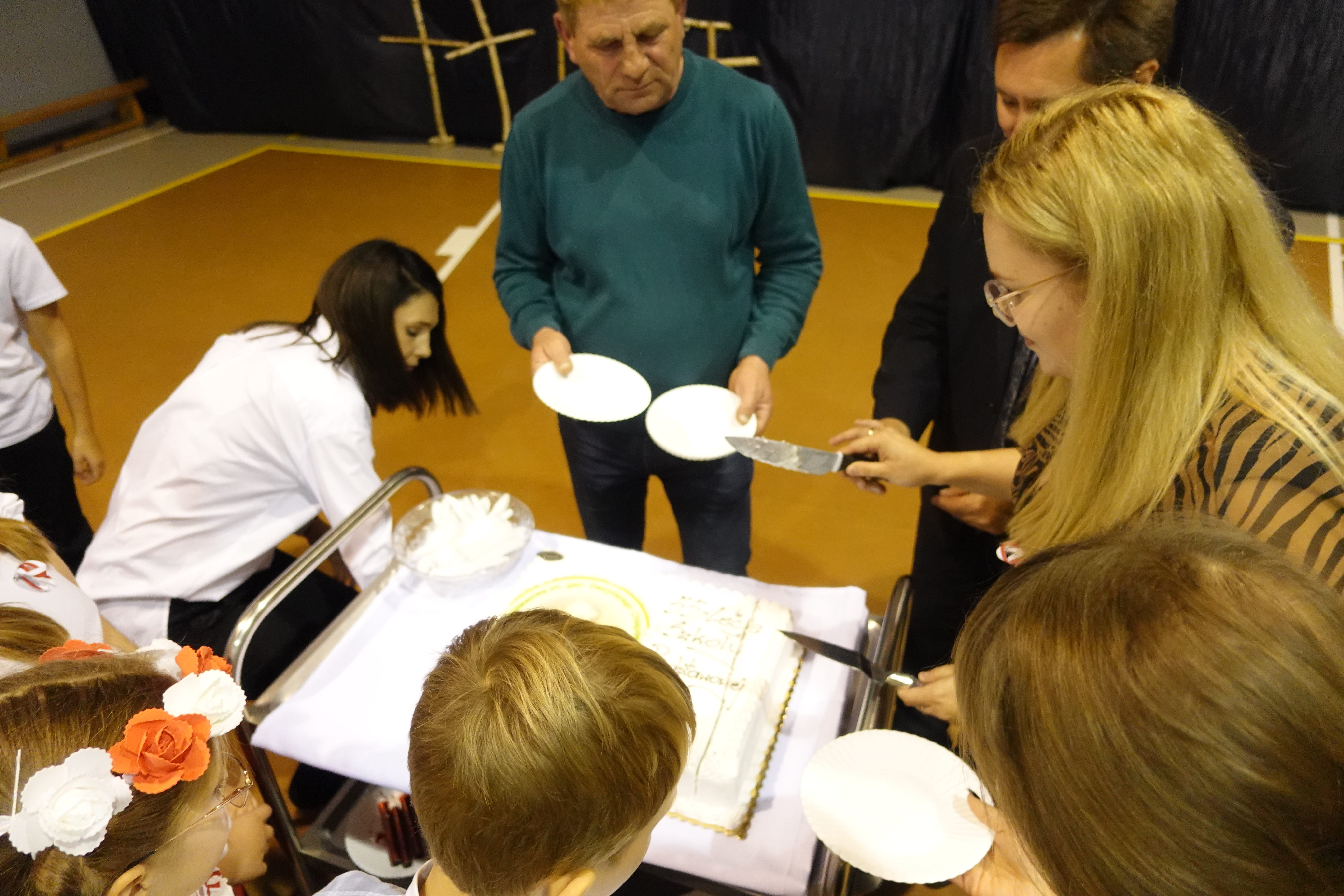 Na zakończenie odśpiewaliśmy „Sto lat” ciesząc się tak zacnym jubileuszem szkoły oraz mogliśmy poczęstować się urodzinowym tortem.