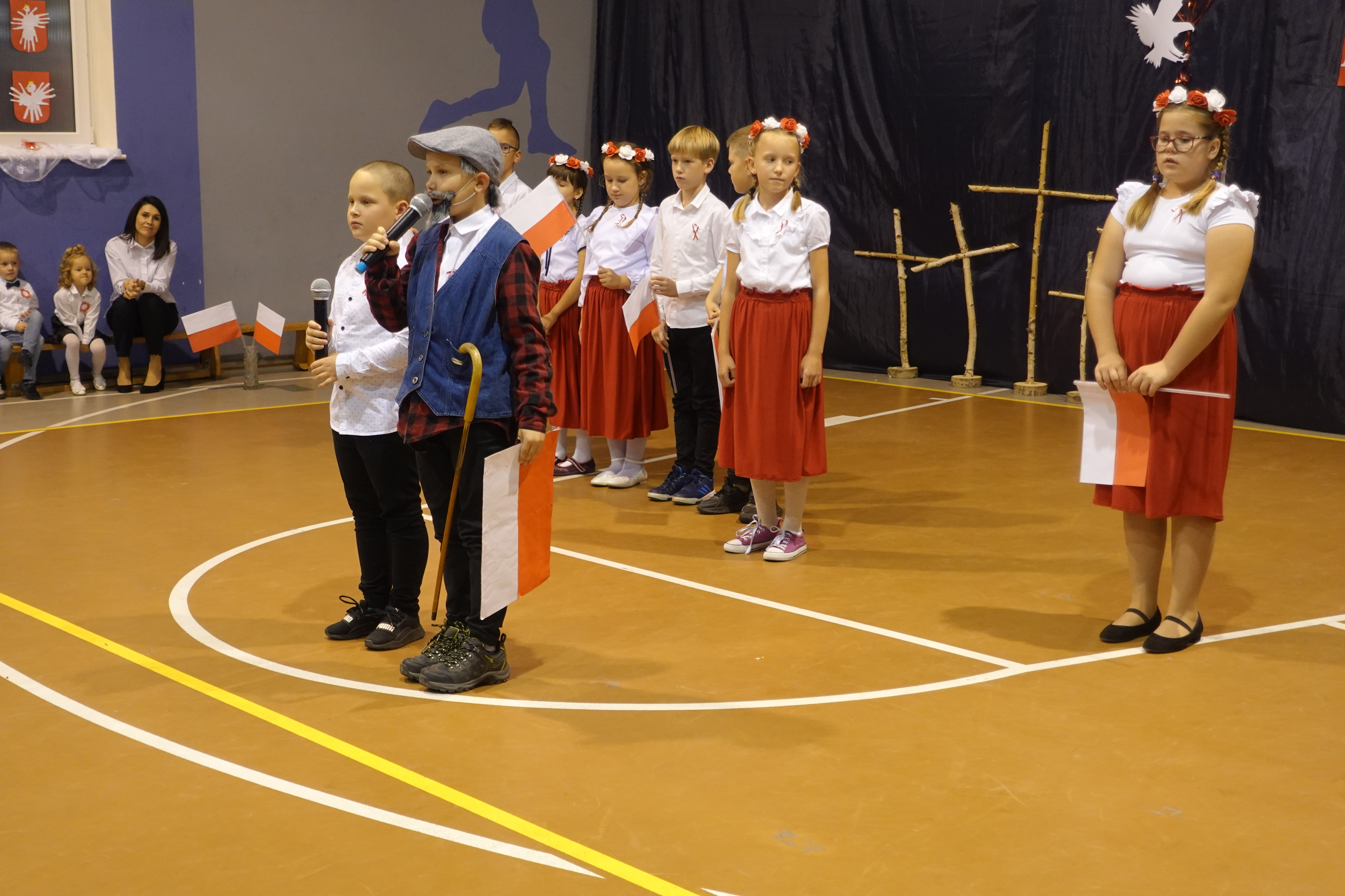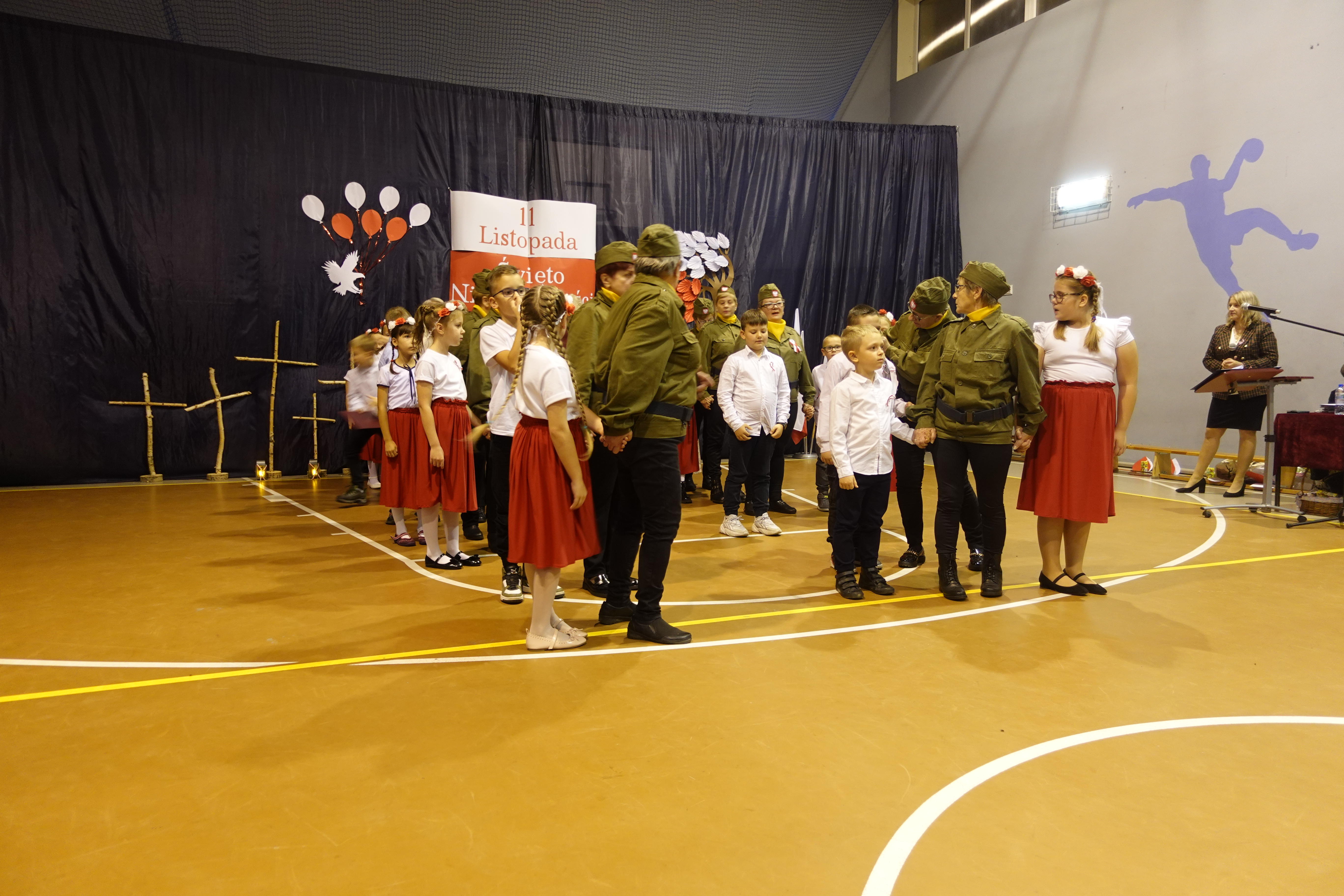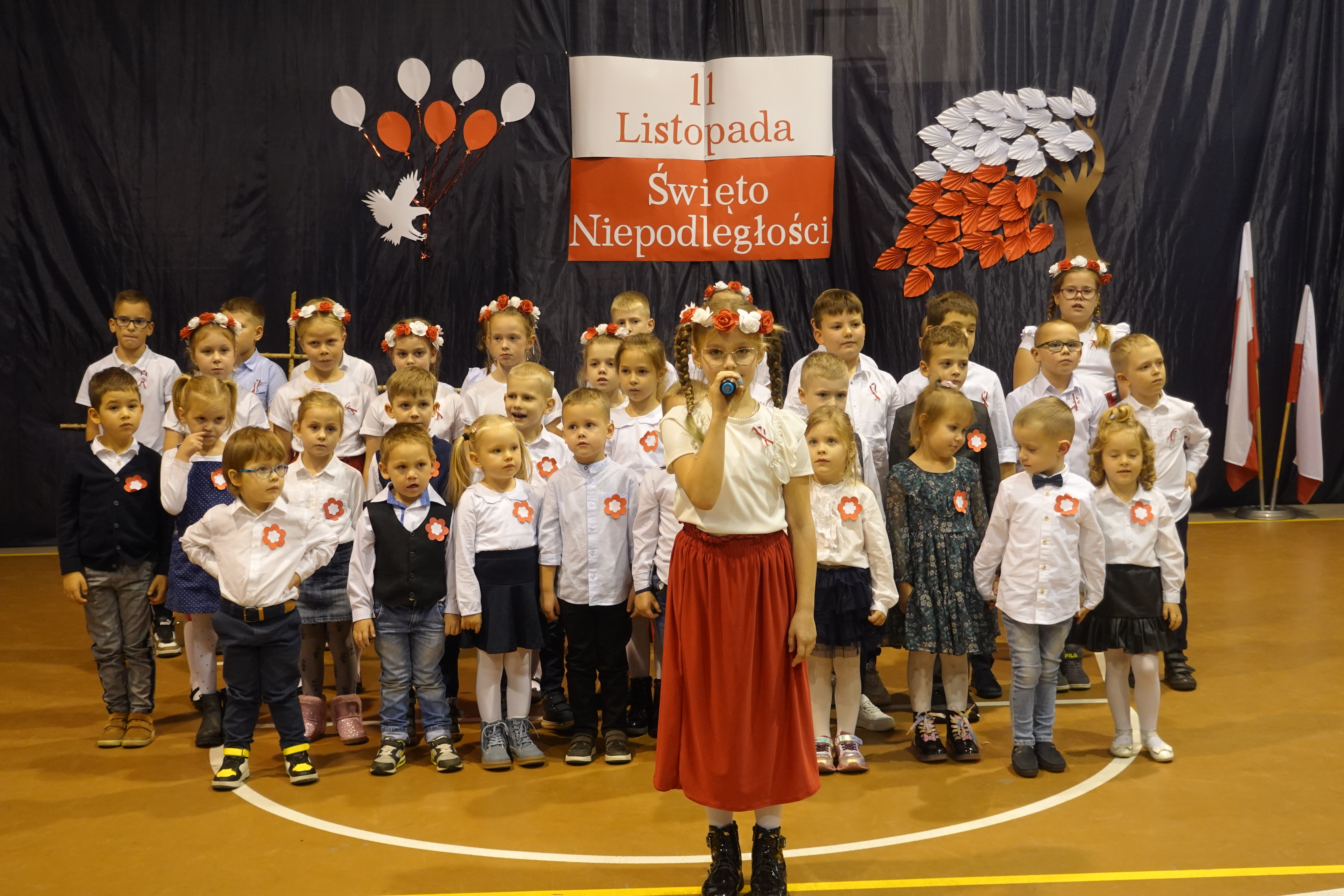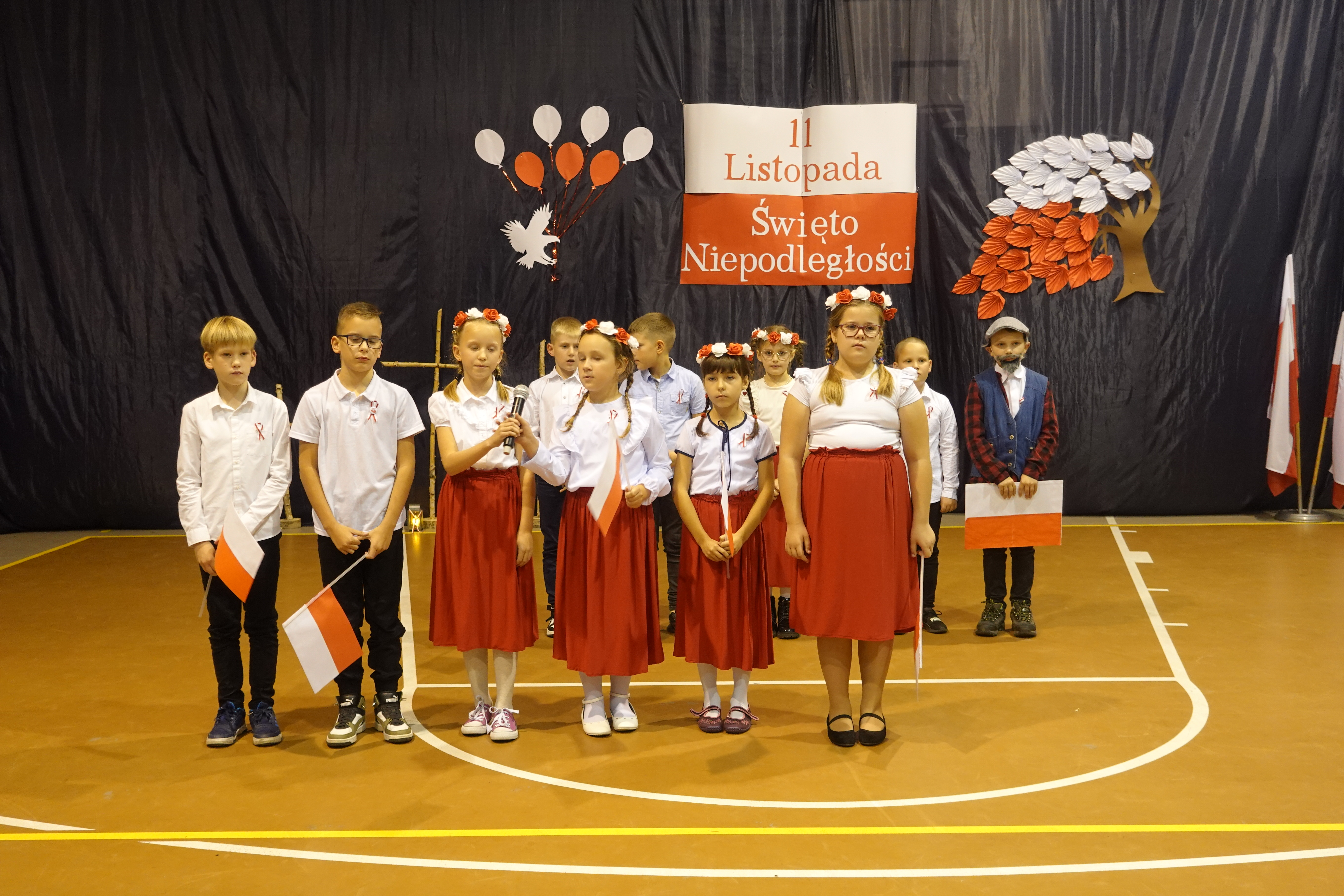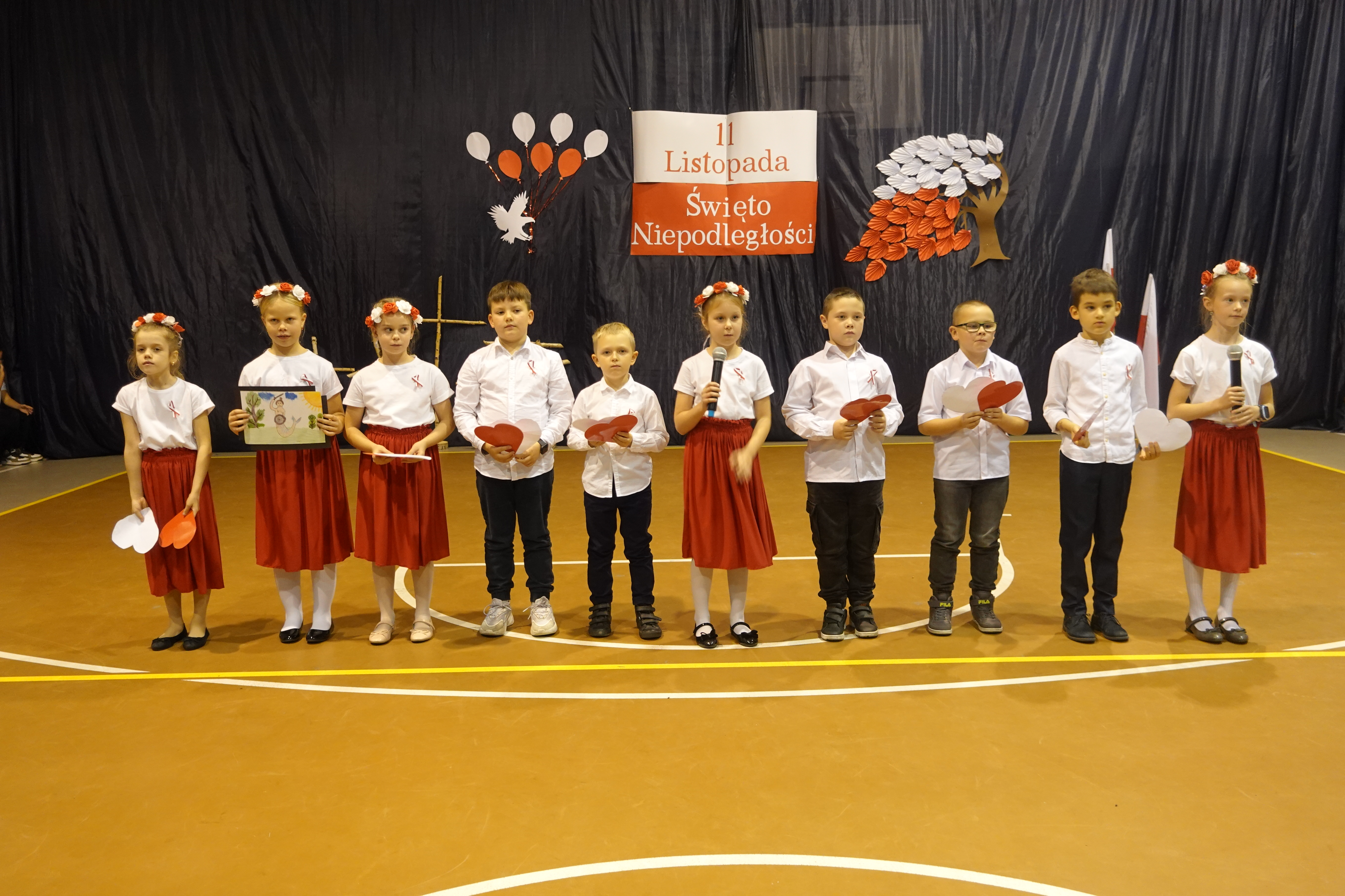 Część artystyczna obejmowała występy uczniów, którzy słowem, piosenką i tańcem ukazali swoje przywiązanie do Ojczyzny i patriotyzm.
