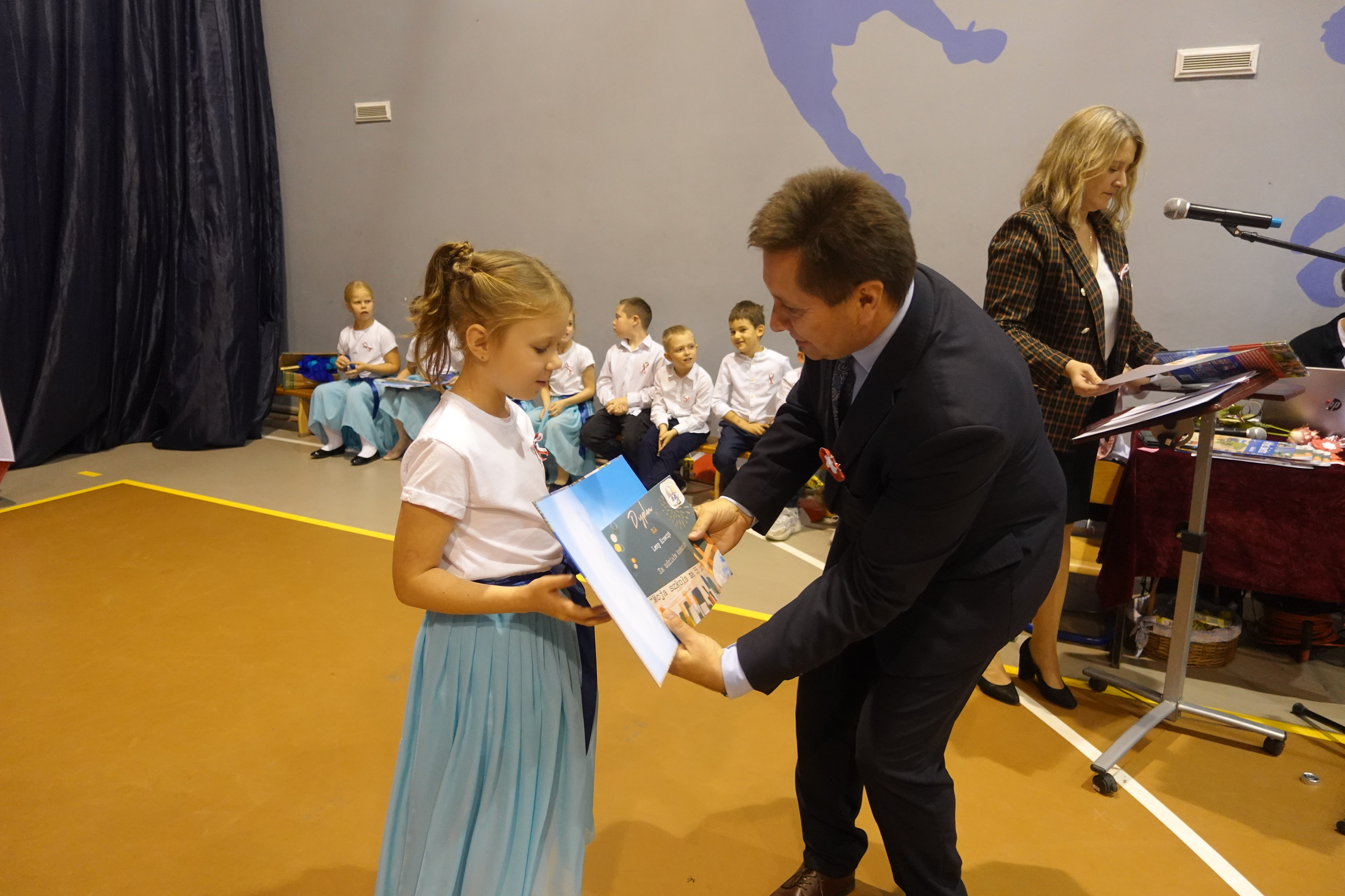 Swoje życzenia z okazji jubileuszu szkoły oraz gratulacje udanego występu wyraził pan zastępca wójta gminy Kościan Mirosław Duda.