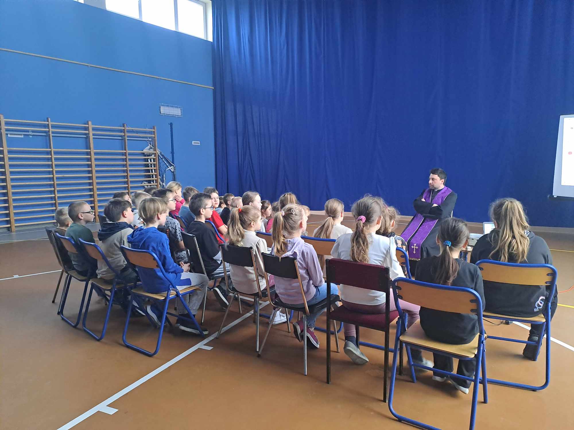 W dniach 12-14.03.2024 r. w naszej szkole odbyły się rekolekcje wielkopostne. Poprowadził je dla nas ks. Patryk A. Nachaczewski, który aktualnie pełni funkcję wikariusza w parafii farnej w Kościanie.