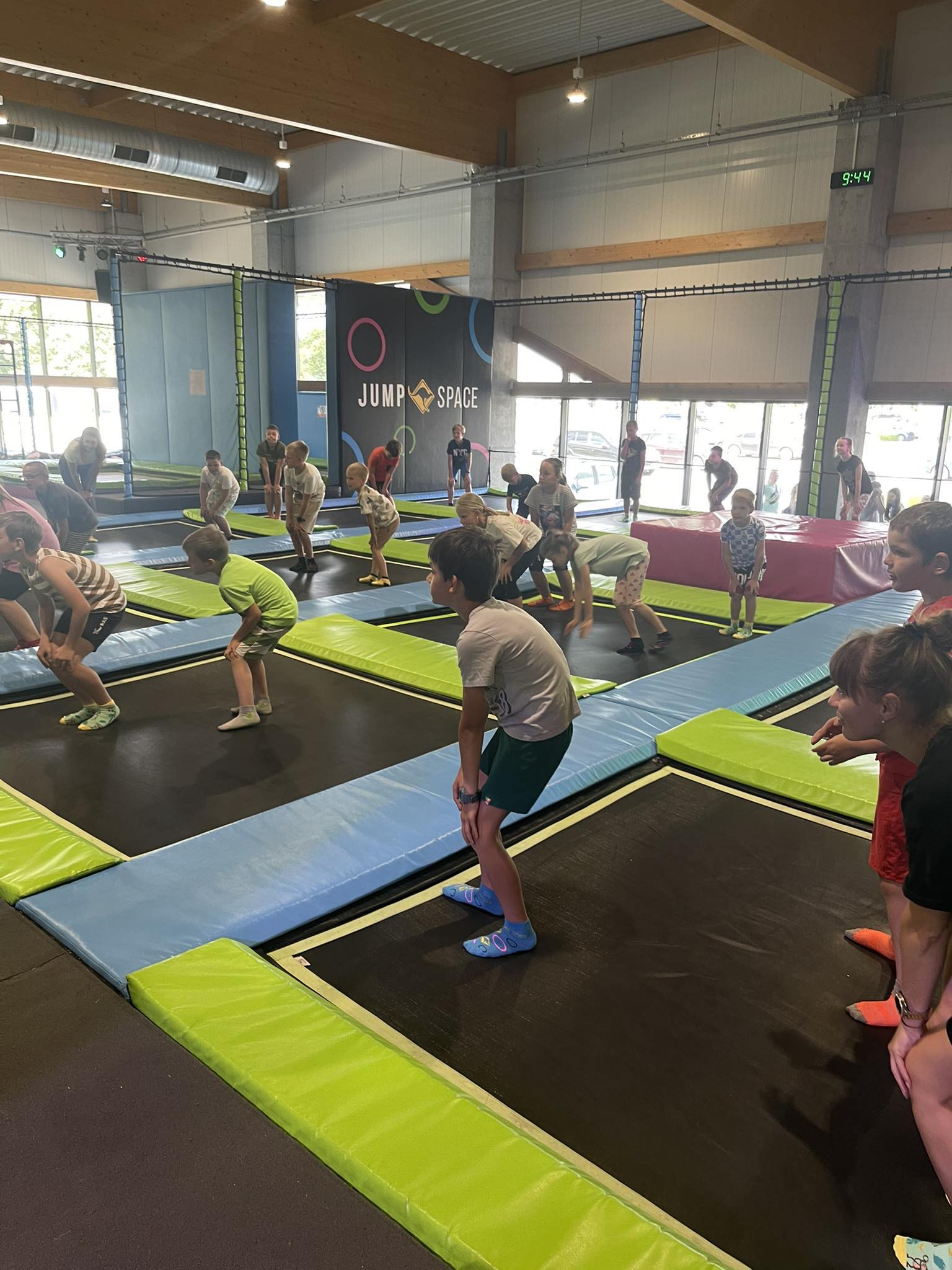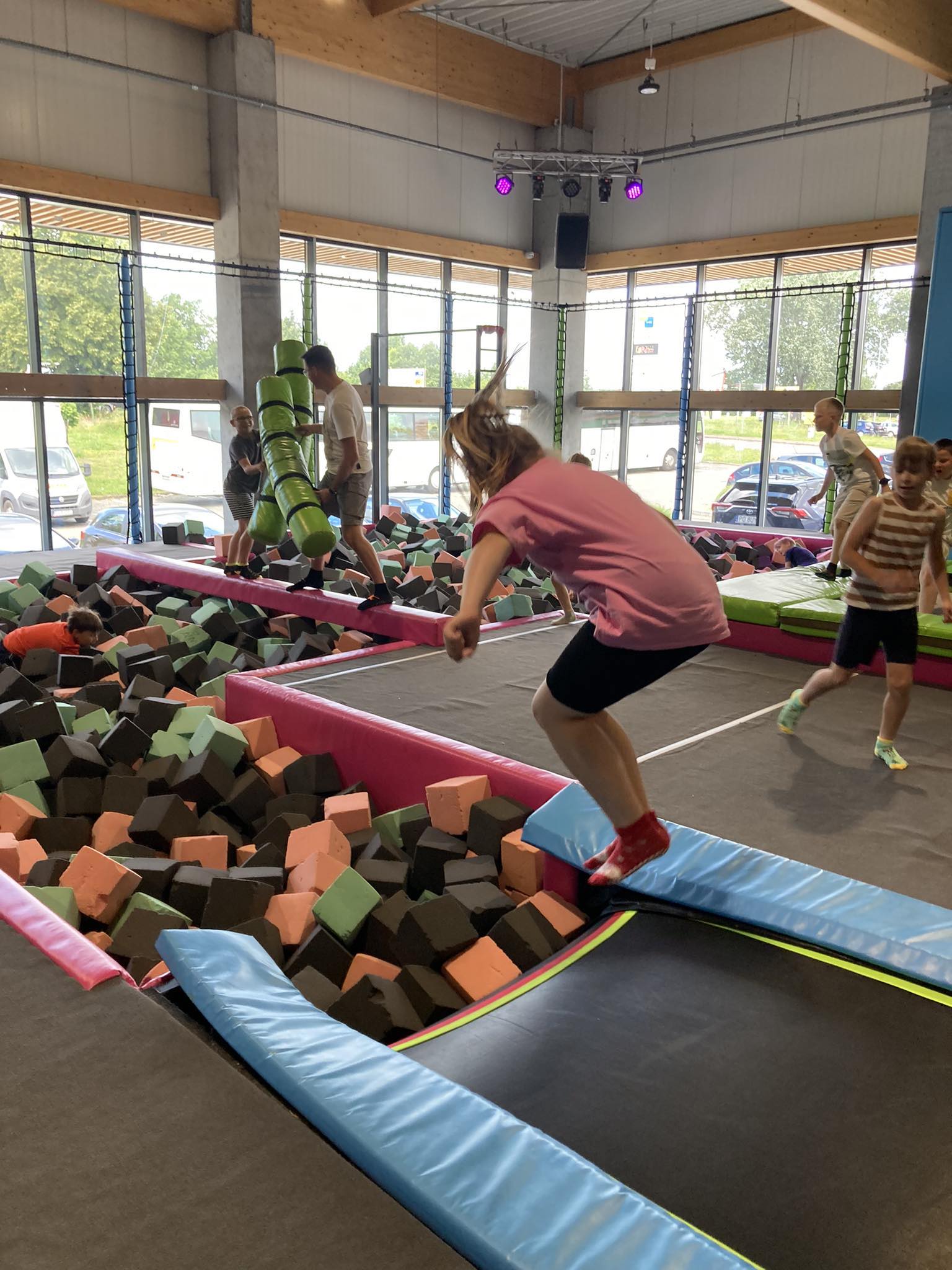 Pierwszego dnia półkolonii – 24 czerwca 2024 – wybraliśmy się do parku trampolin w Śremie – Jump Space. Na początku trenerka przeprowadziła ciekawe zajęcia rozciągające i rozgrzewające mięśnie. Następnie mieliśmy czas na swobodne skoki i zabawy na trampolinach, zjeżdalniach i innych atrakcjach. Po zakończeniu zajęć wszyscy udaliśmy się do restauracji McDonald’s, gdzie mogliśmy zjeść ulubione posiłki i podzielić się wrażeniami z dnia.