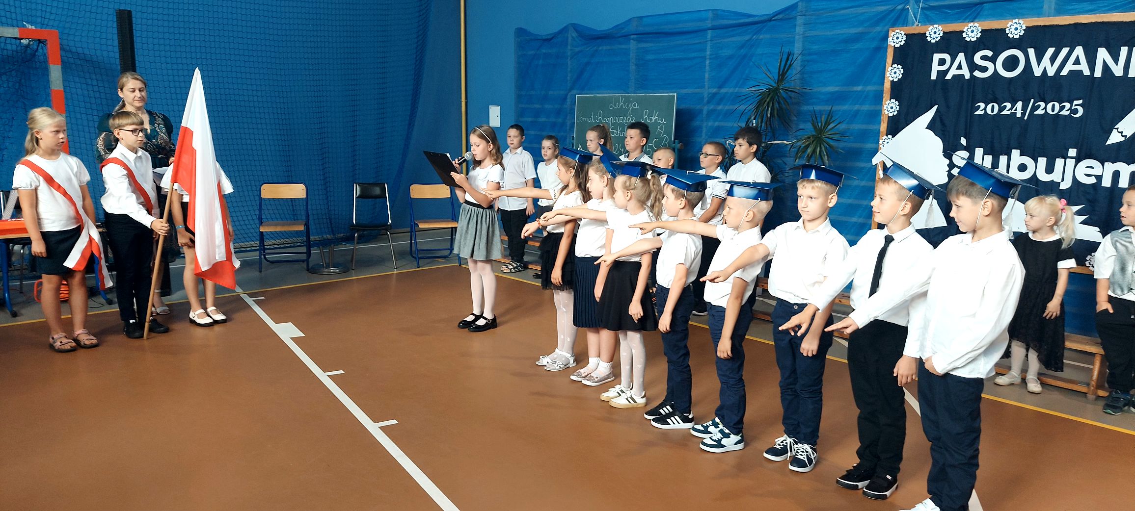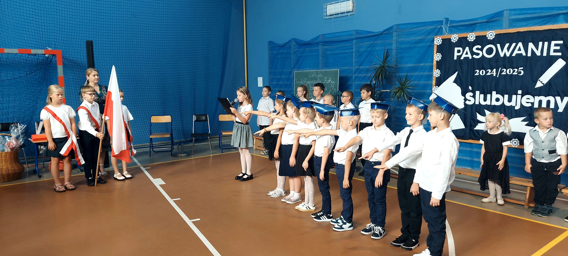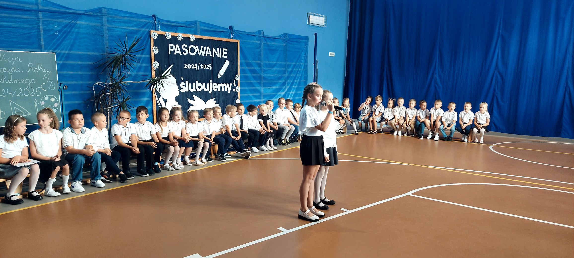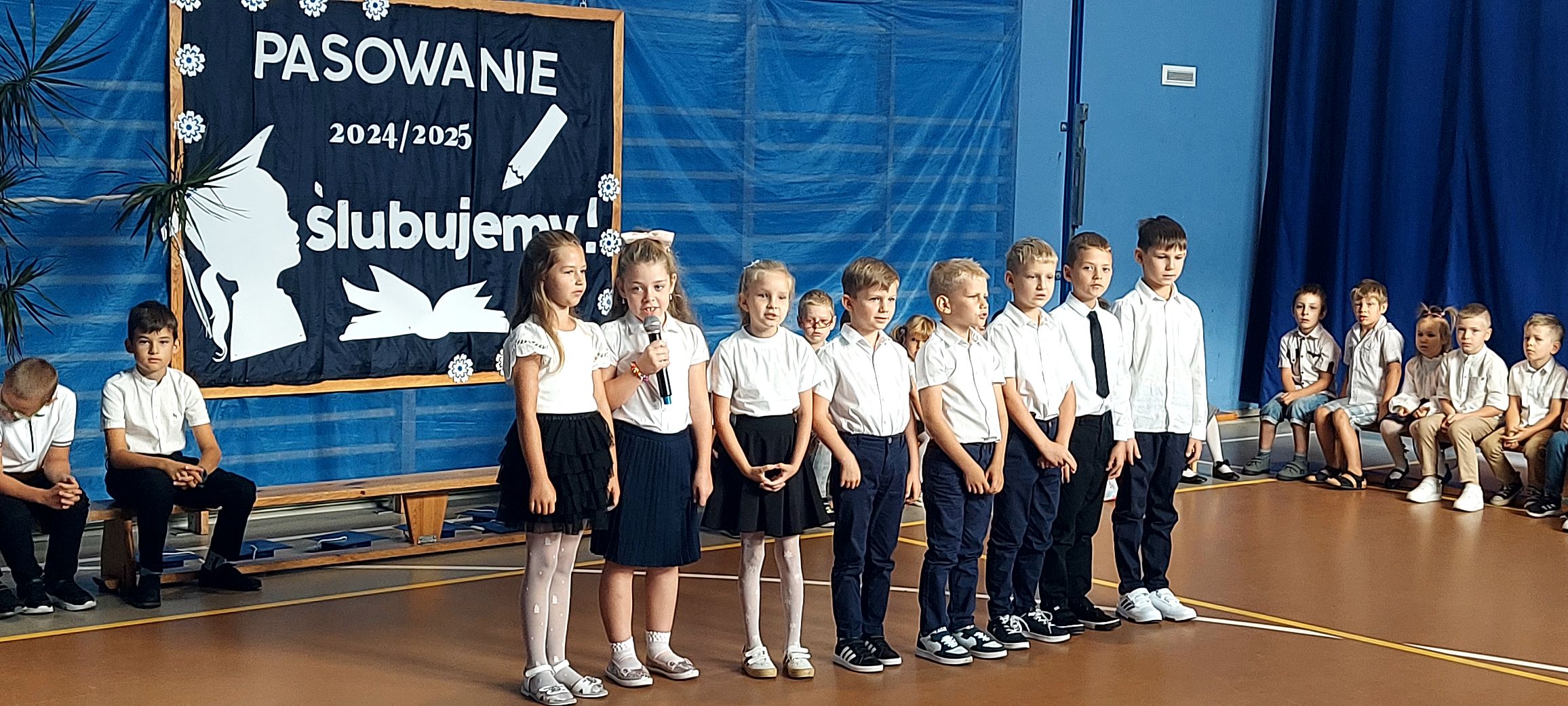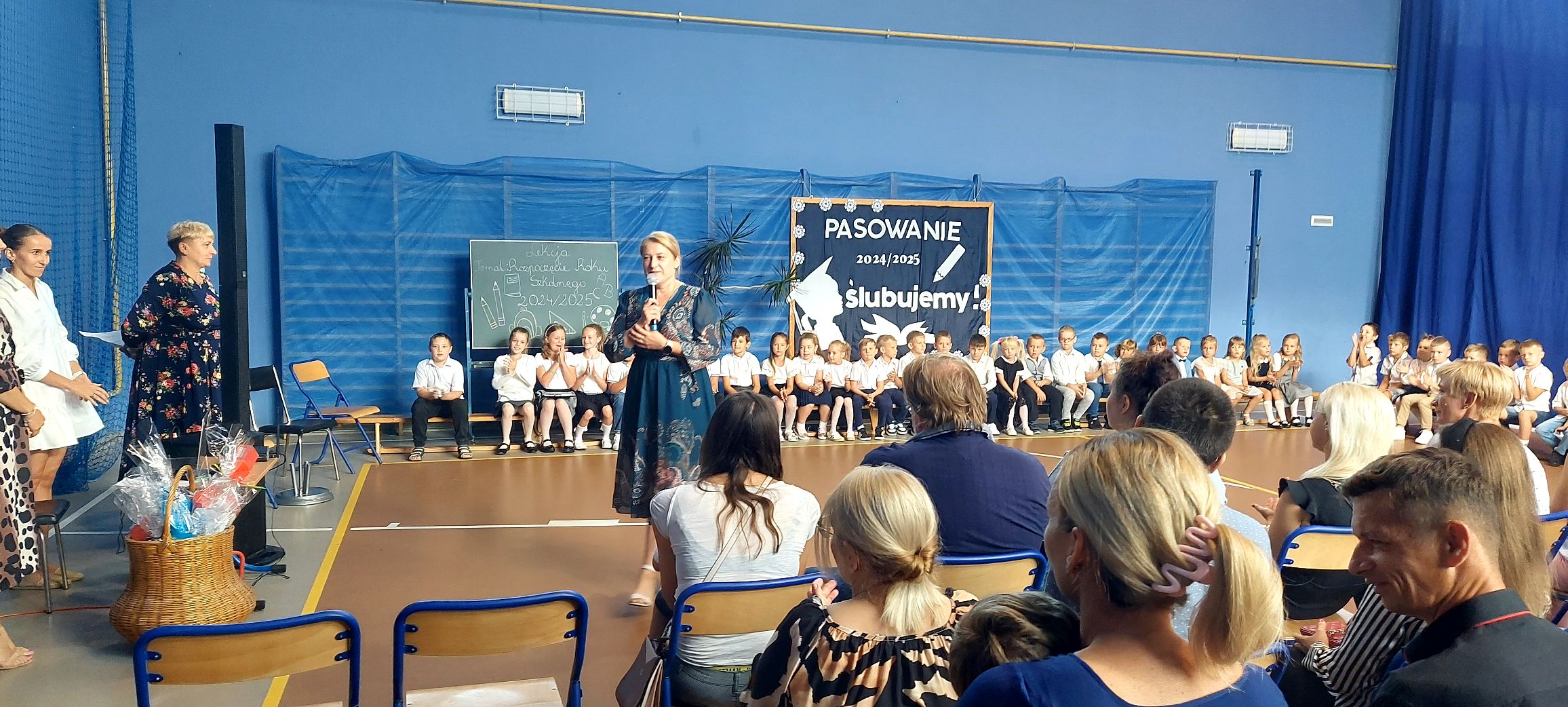 Dzieci z kl. I po uprzednim zaprezentowaniu swoich umiejętności i wiedzy zasilili grono naszych uczniów. Pasowała ich Pani kierownik Joanna Łabędzka.