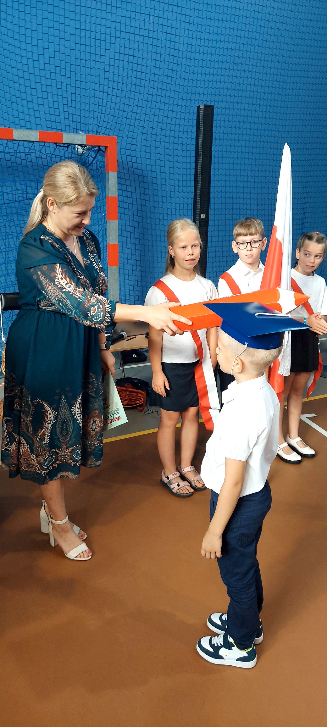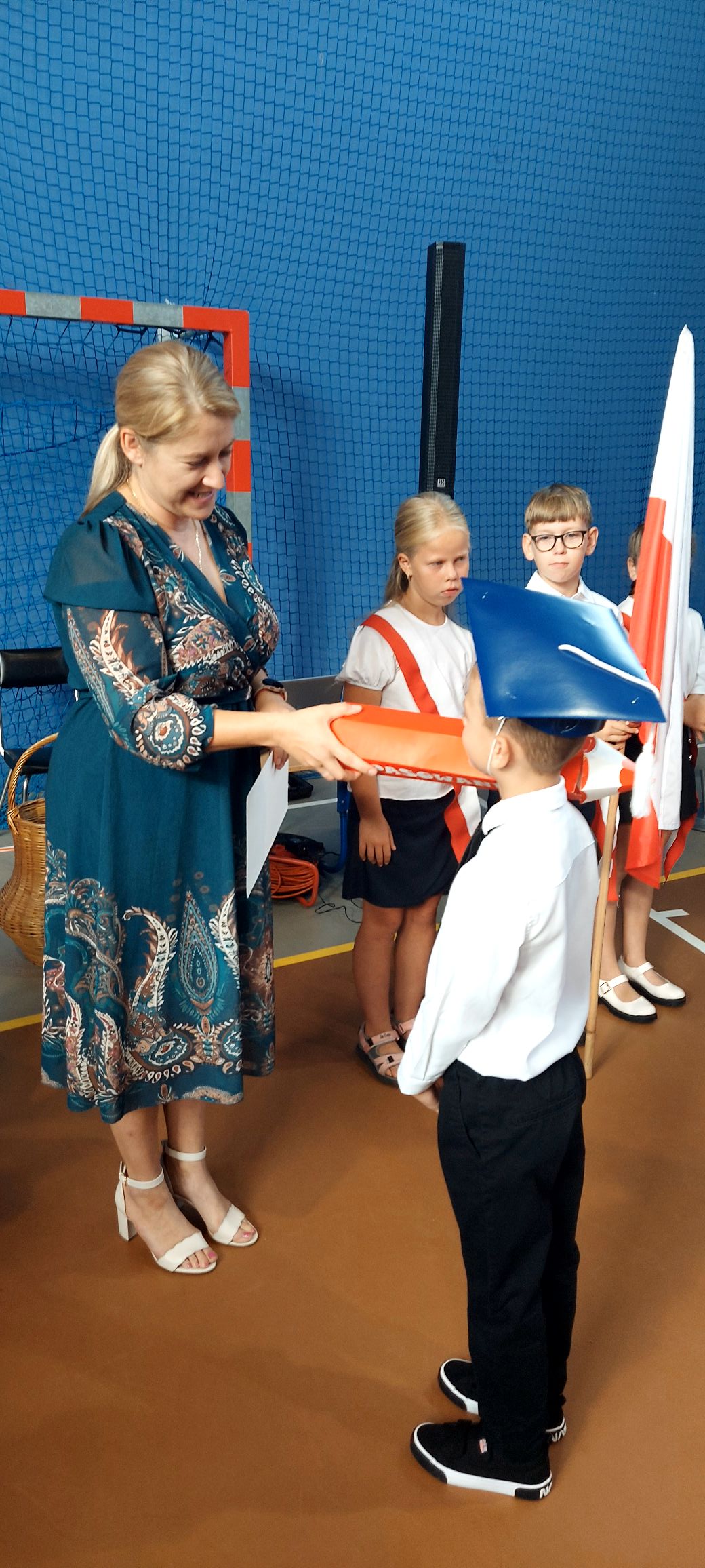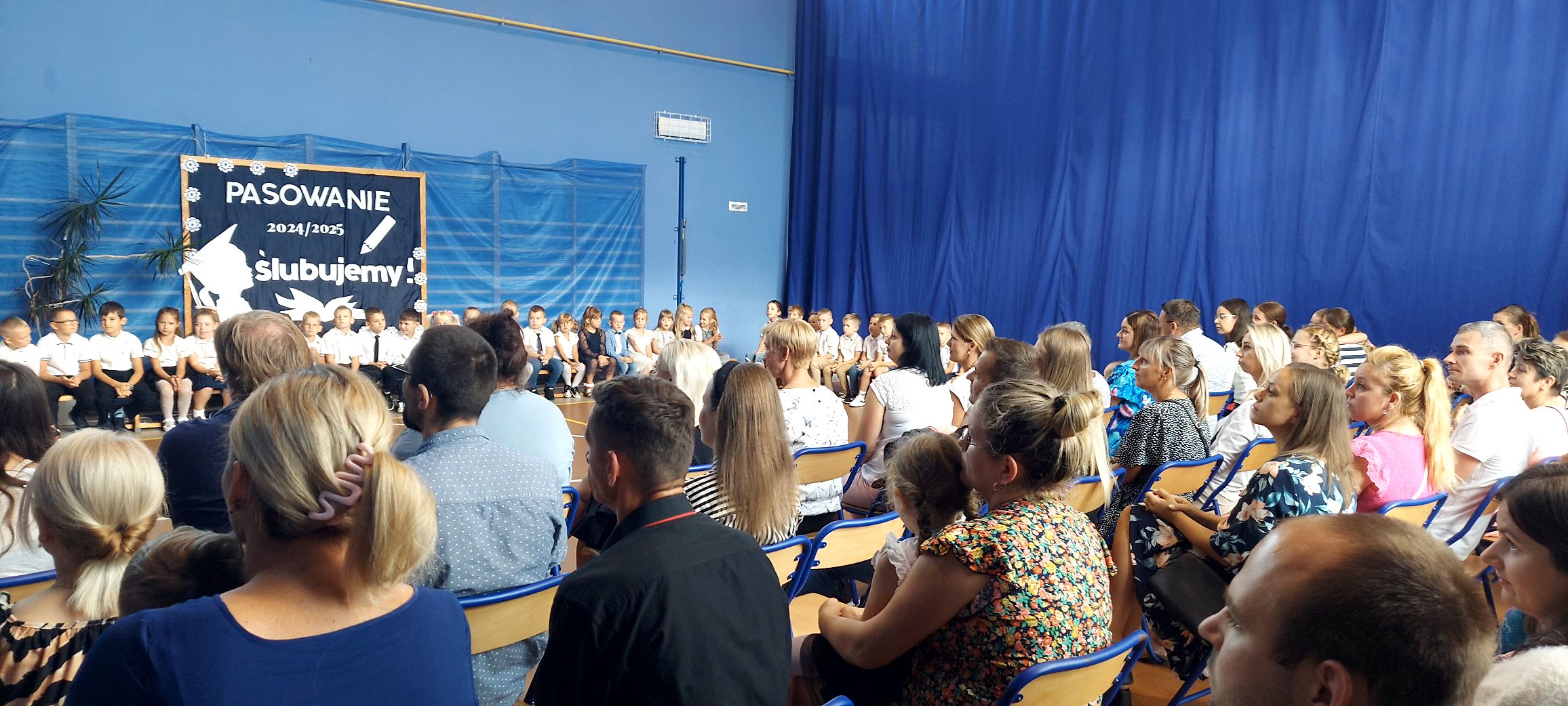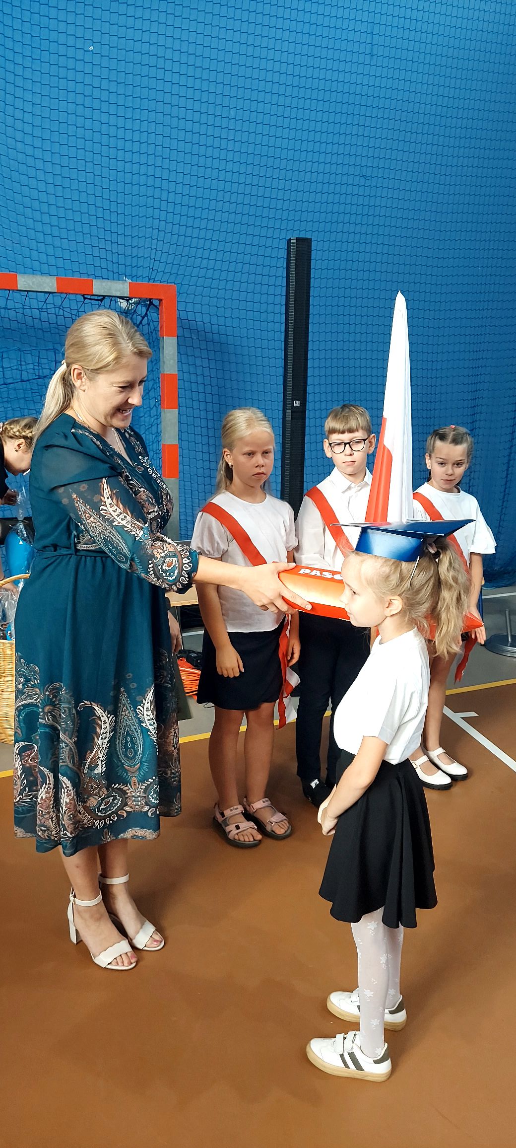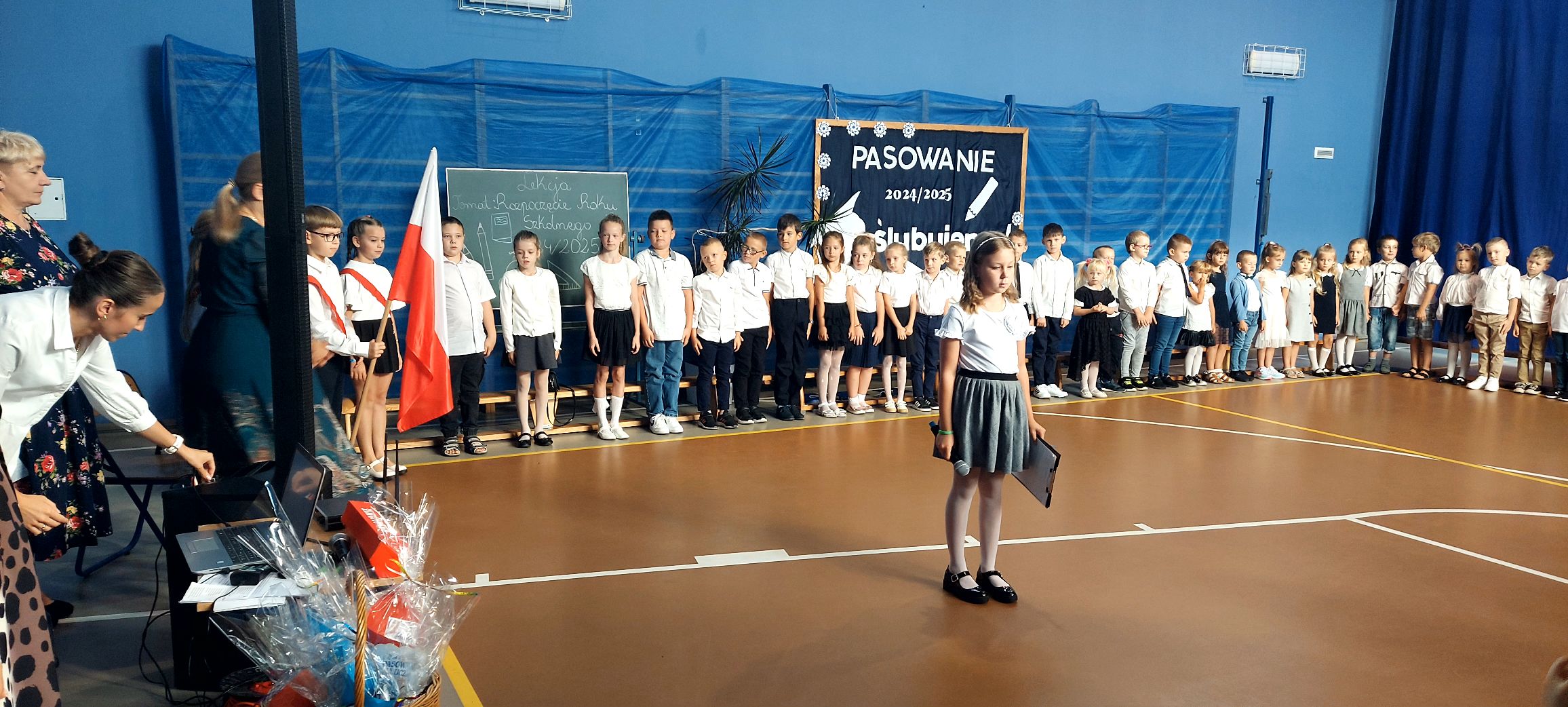 Dzieci z kl. I po uprzednim zaprezentowaniu swoich umiejętności i wiedzy zasilili grono naszych uczniów. Pasowała ich Pani kierownik Joanna Łabędzka.