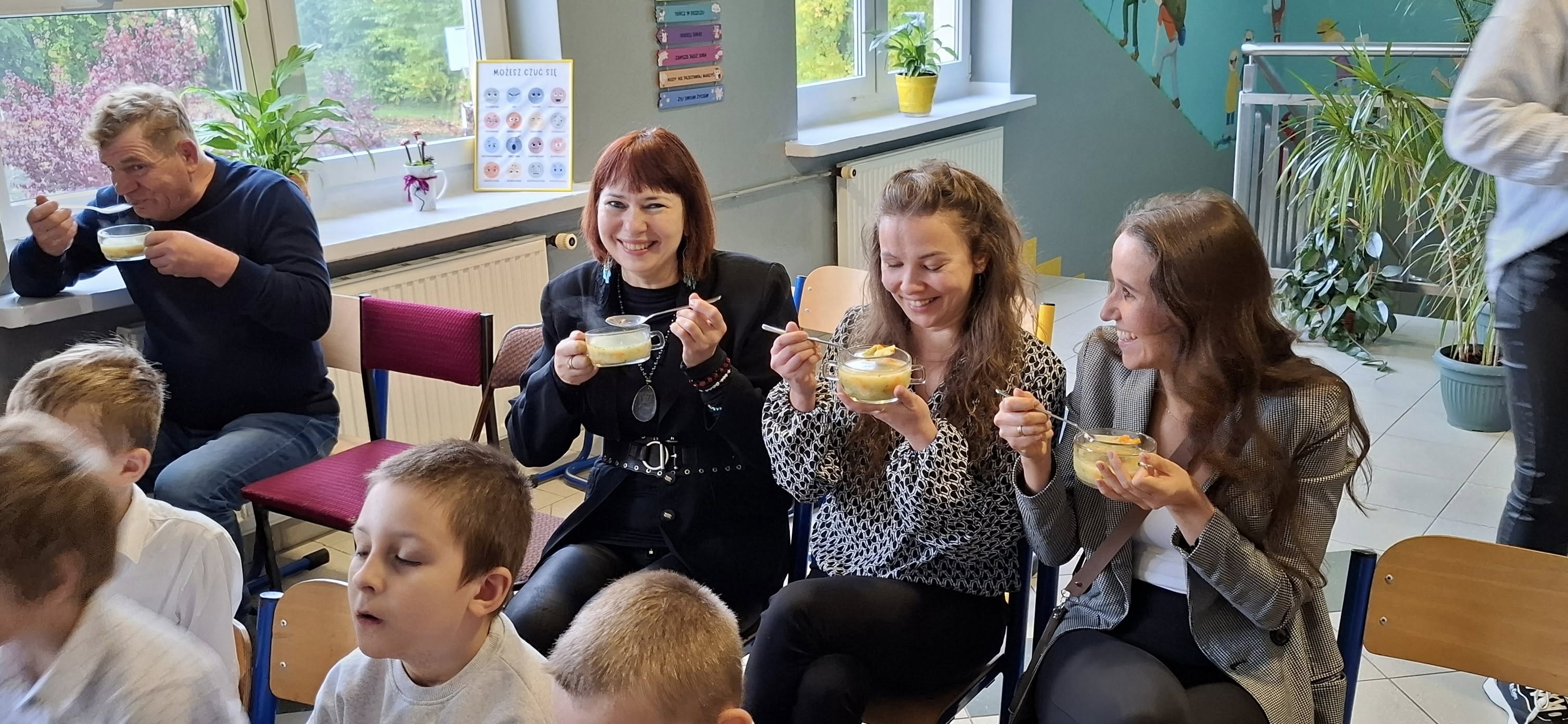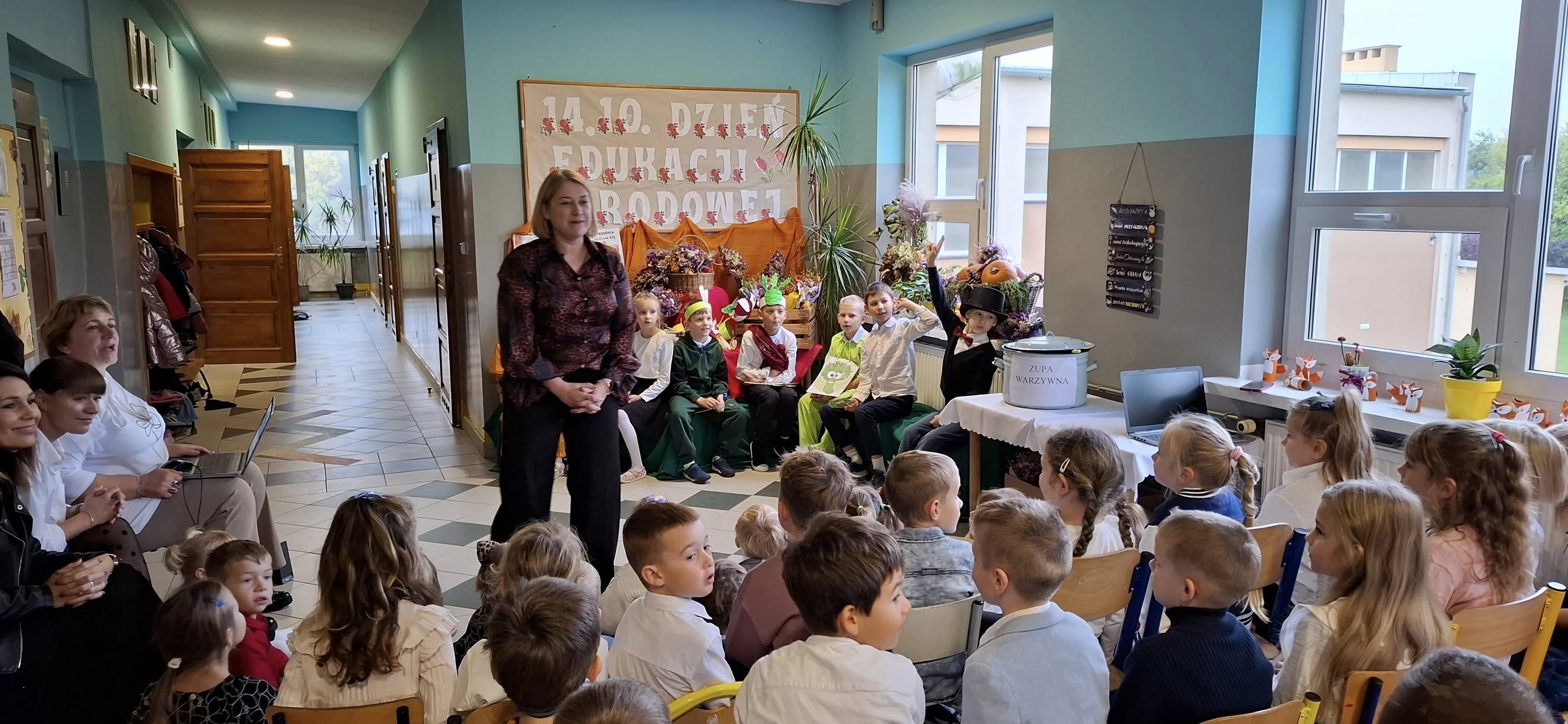 Z okazji tego święta wszyscy pracownicy szkoły zostali zaproszeni na przedstawienie – gdzie oprócz życzeń, piosenek mogliśmy również obejrzeć przedstawienie pt. „Na straganie”. Po przedstawieniu czekała nas niespodzianka: z wszystkich warzyw „występujących” w przedstawieniu została ugotowana zupa (i to niejako na naszych oczach 😉).